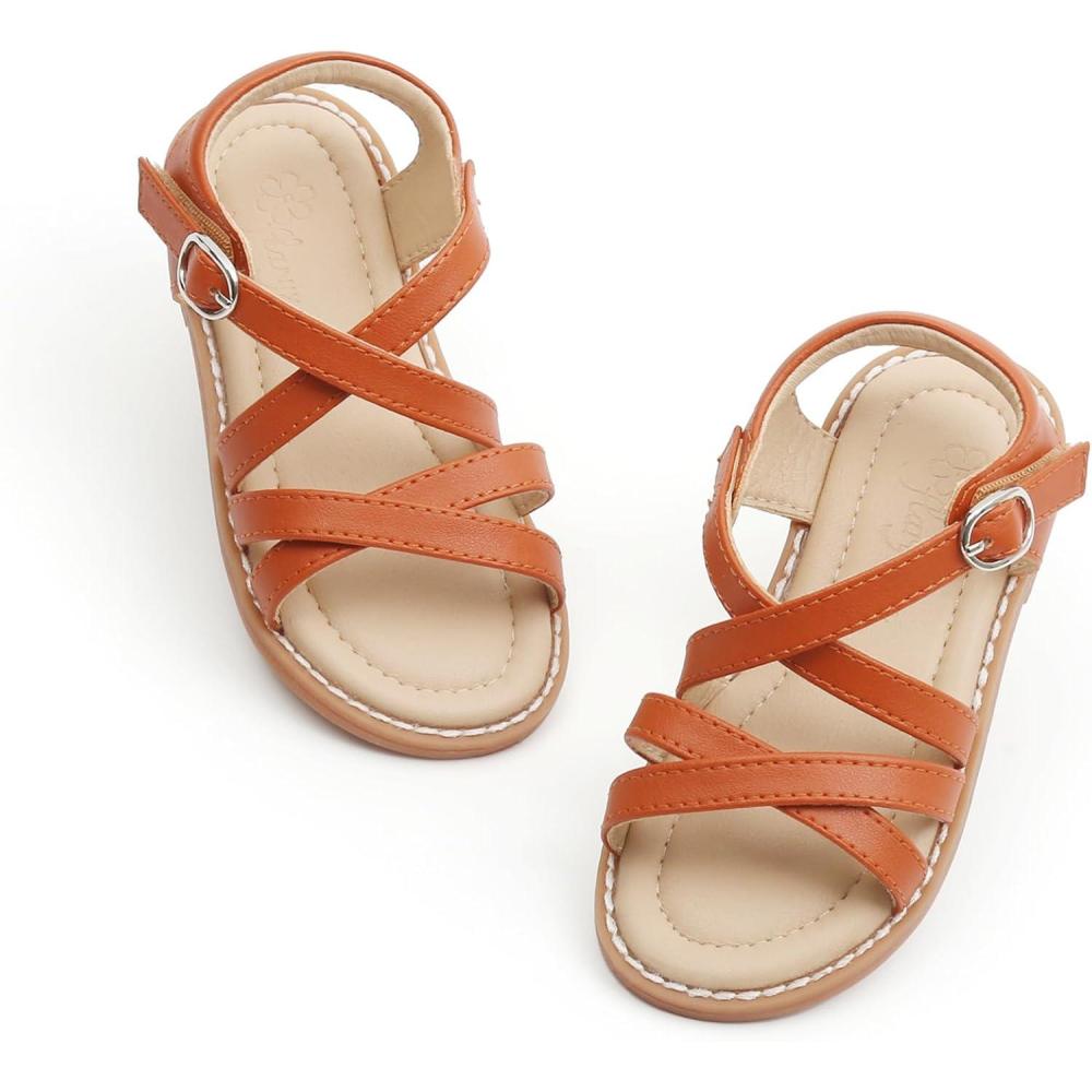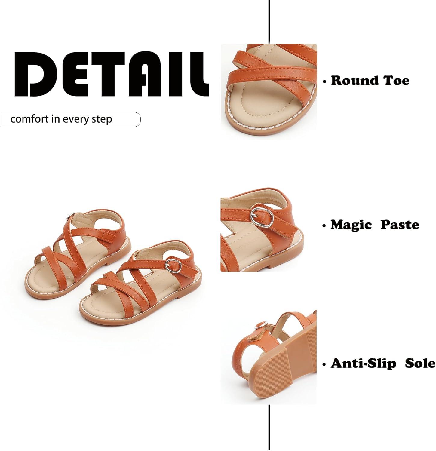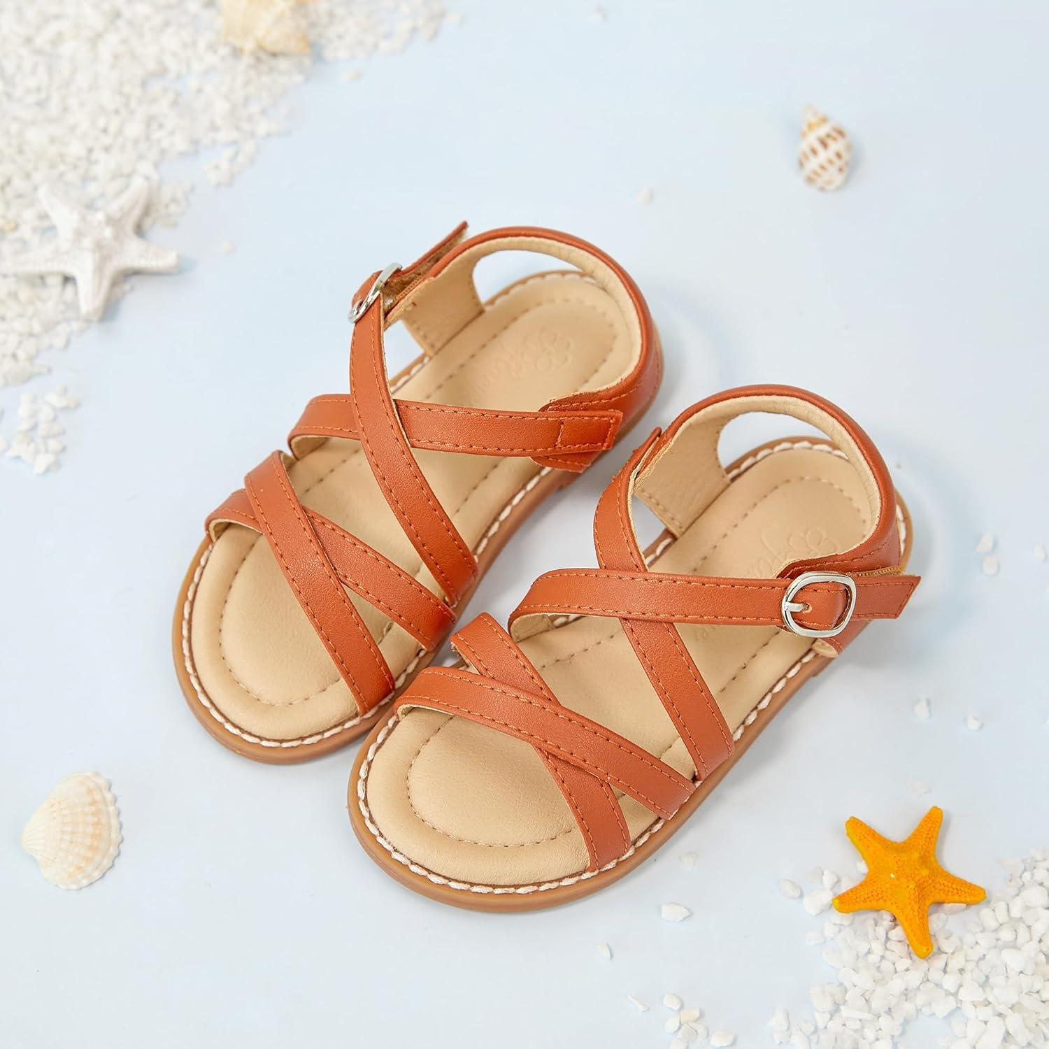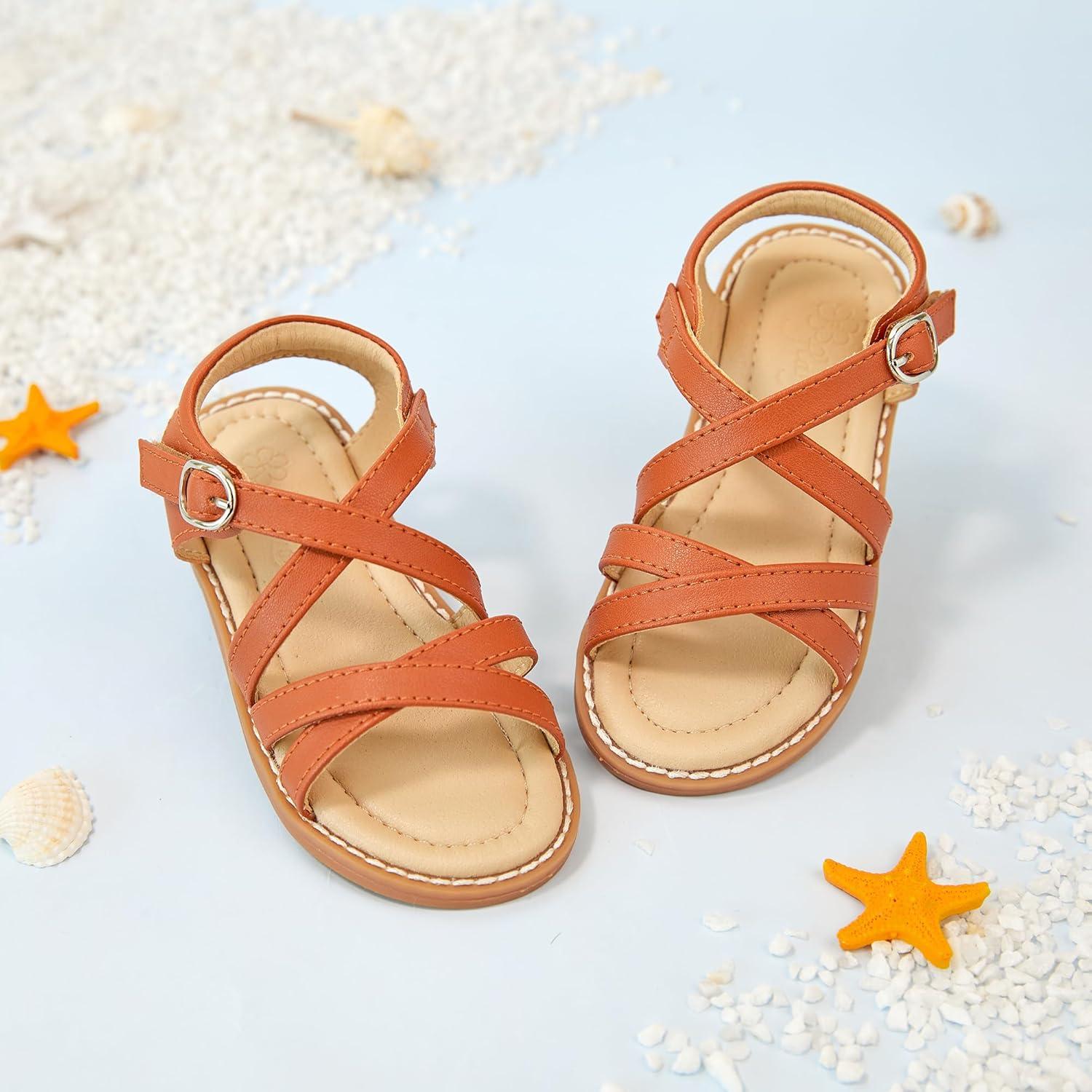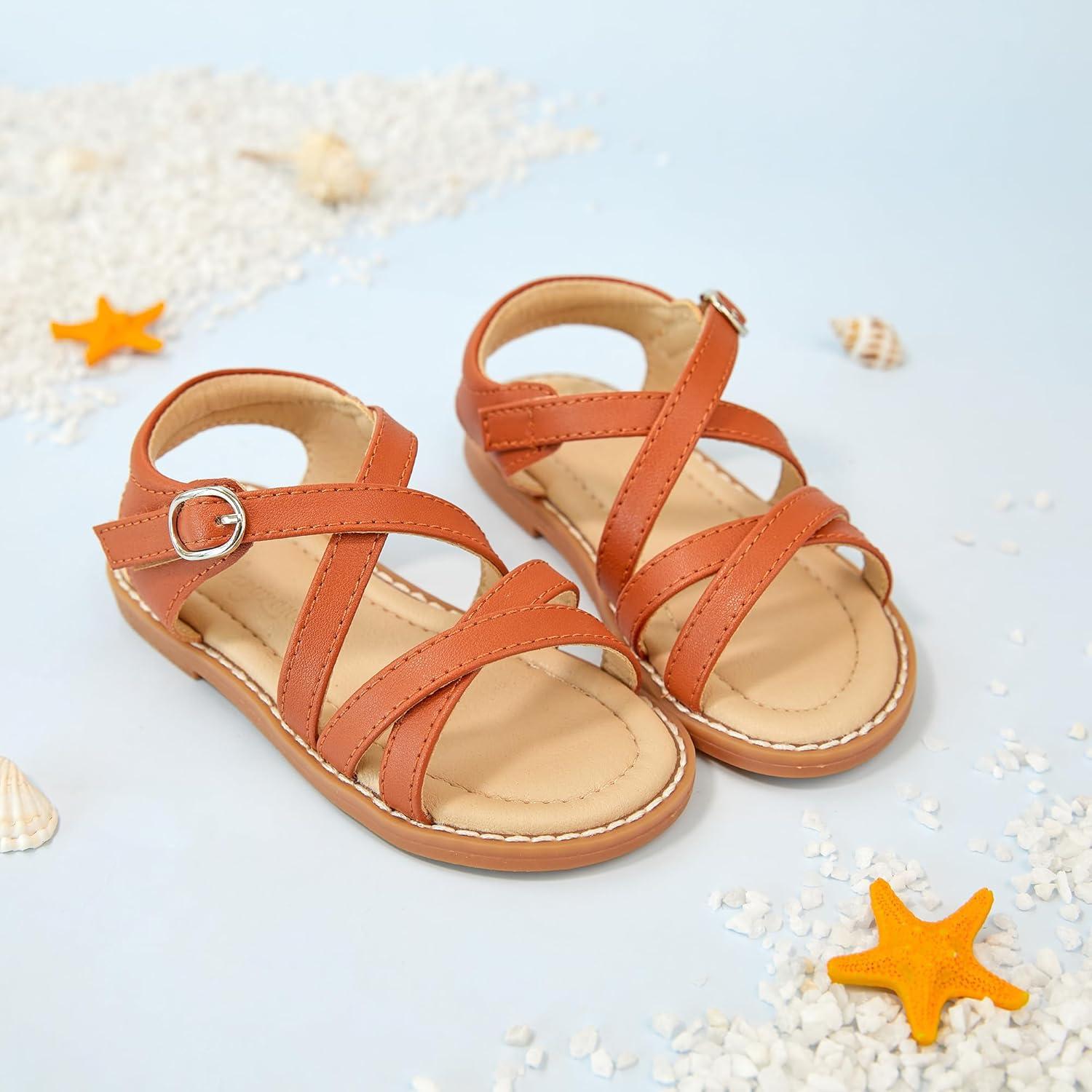 Flaryzone Girls Sandals Open Toe Summer Flats Dress Sandals Shoes Toddler/Little Kid(Fm05-brown)
