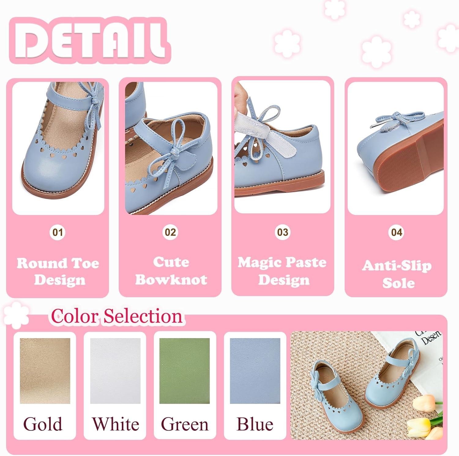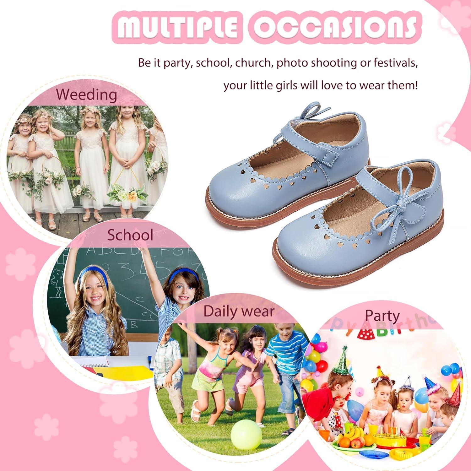 Flaryzone Toddler Little Girl Mary Jane School Uniform Oxfords Flat Dress Shoes(Fa03-blue)