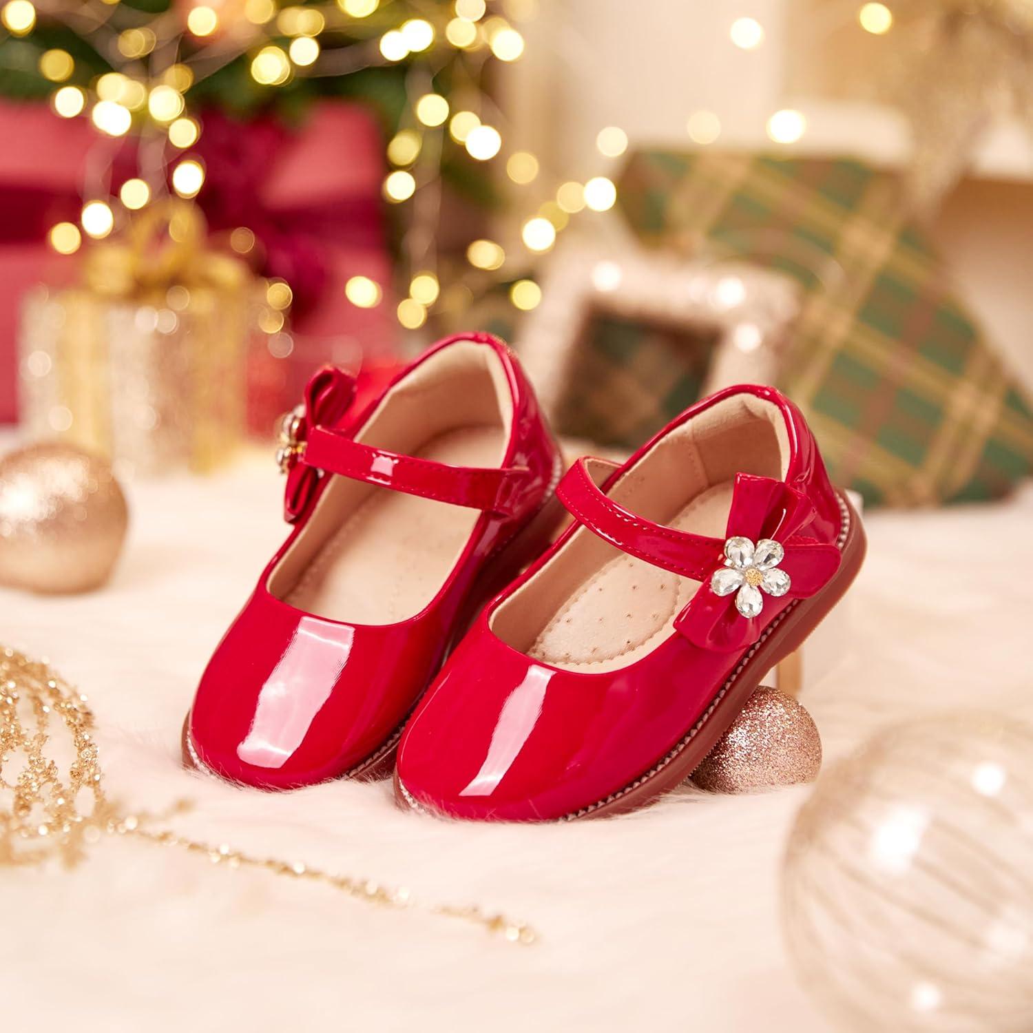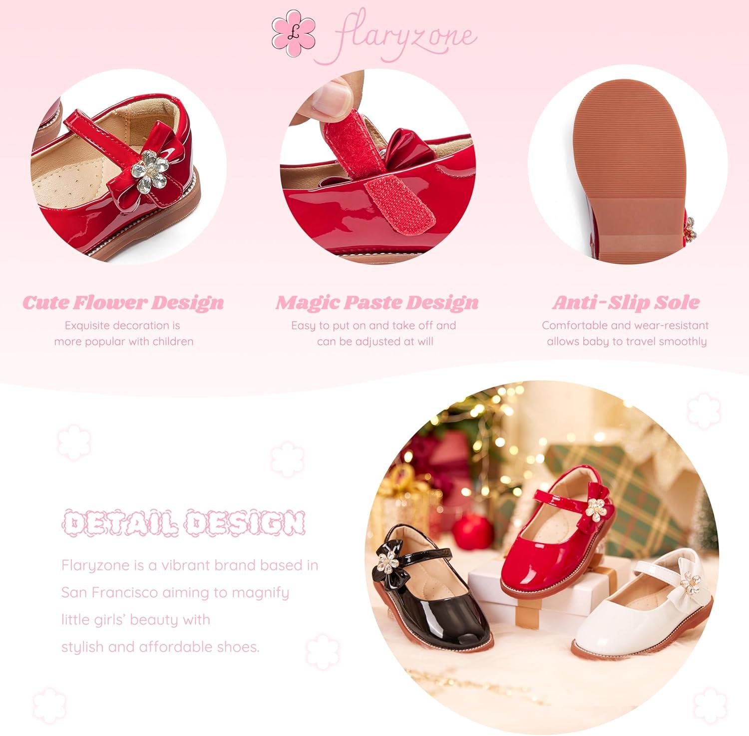 Flaryzone Toddler Little Girl Mary Jane School Uniform Oxfords Flat Dress Shoes(Fa06-red)