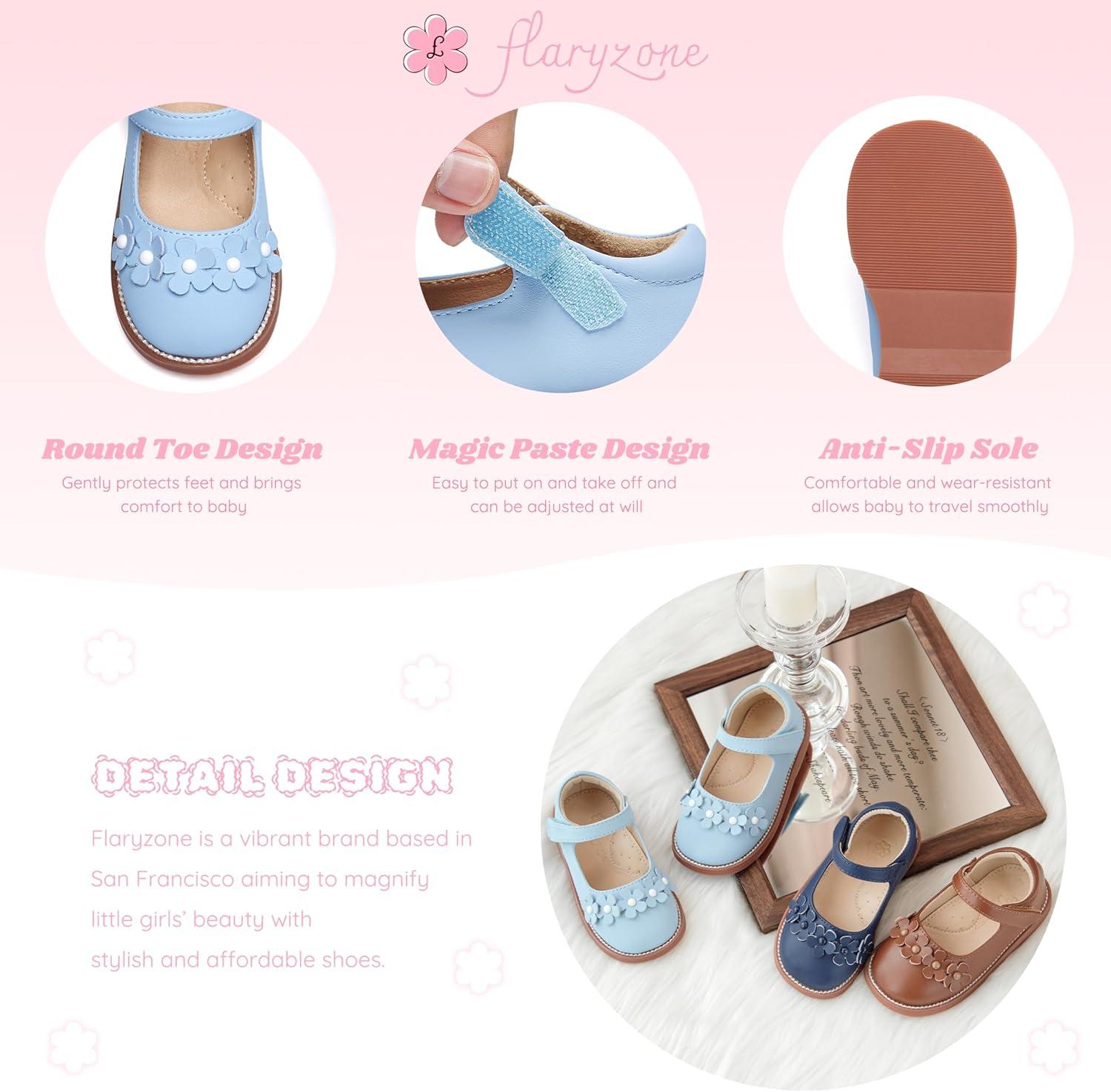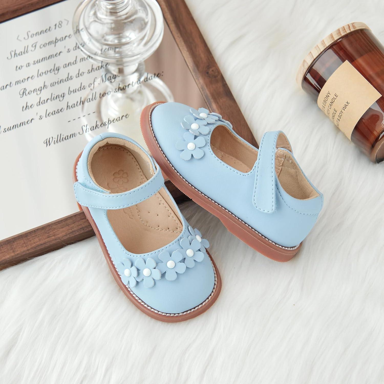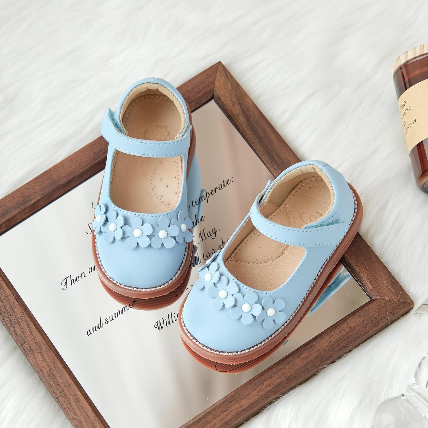 Flaryzone Toddler Little Girl Mary Jane School Uniform Oxfords Flat Dress Shoes(Light Blue-fr63)