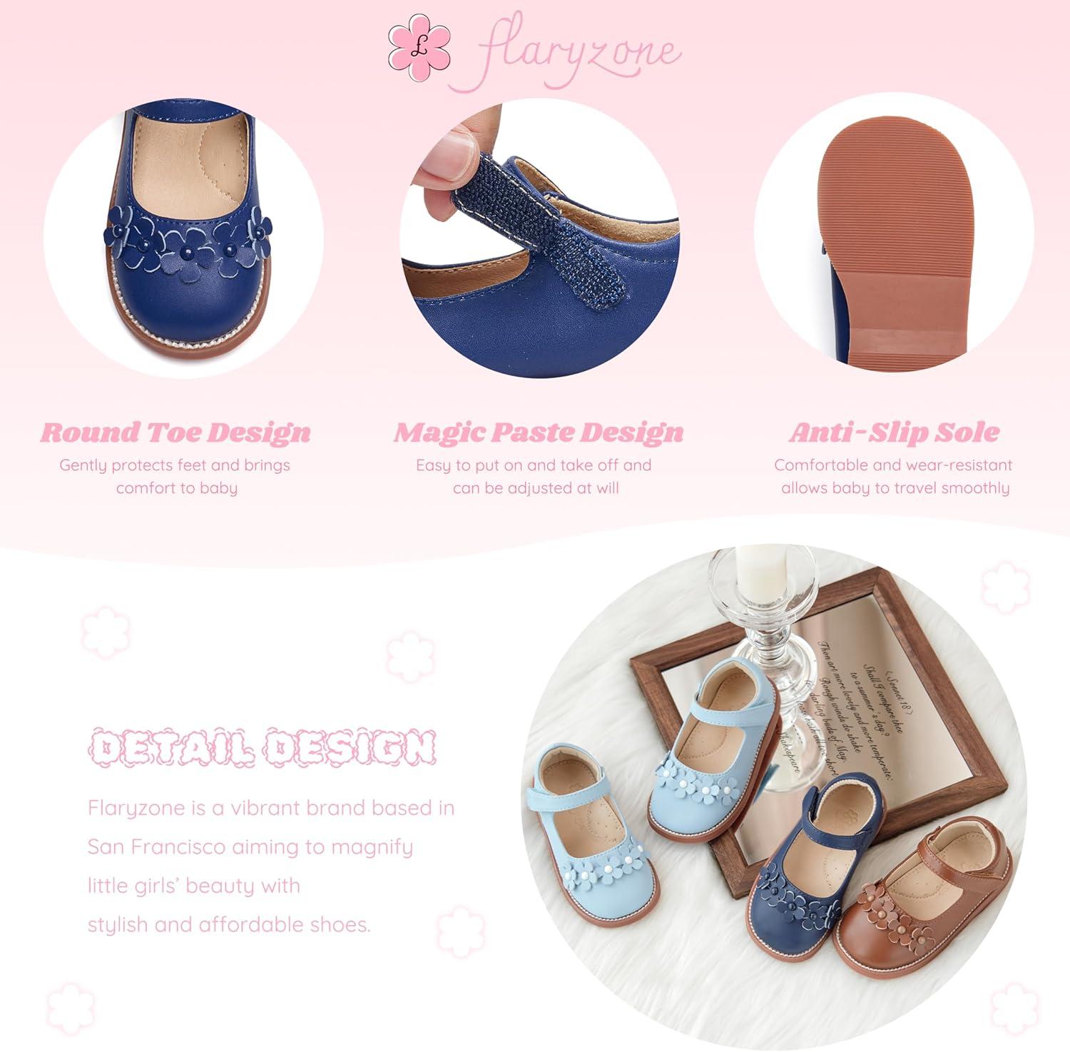 Flaryzone Toddler Little Girl Mary Jane School Uniform Oxfords Flat Dress Shoes(Navy Blue-fr63)