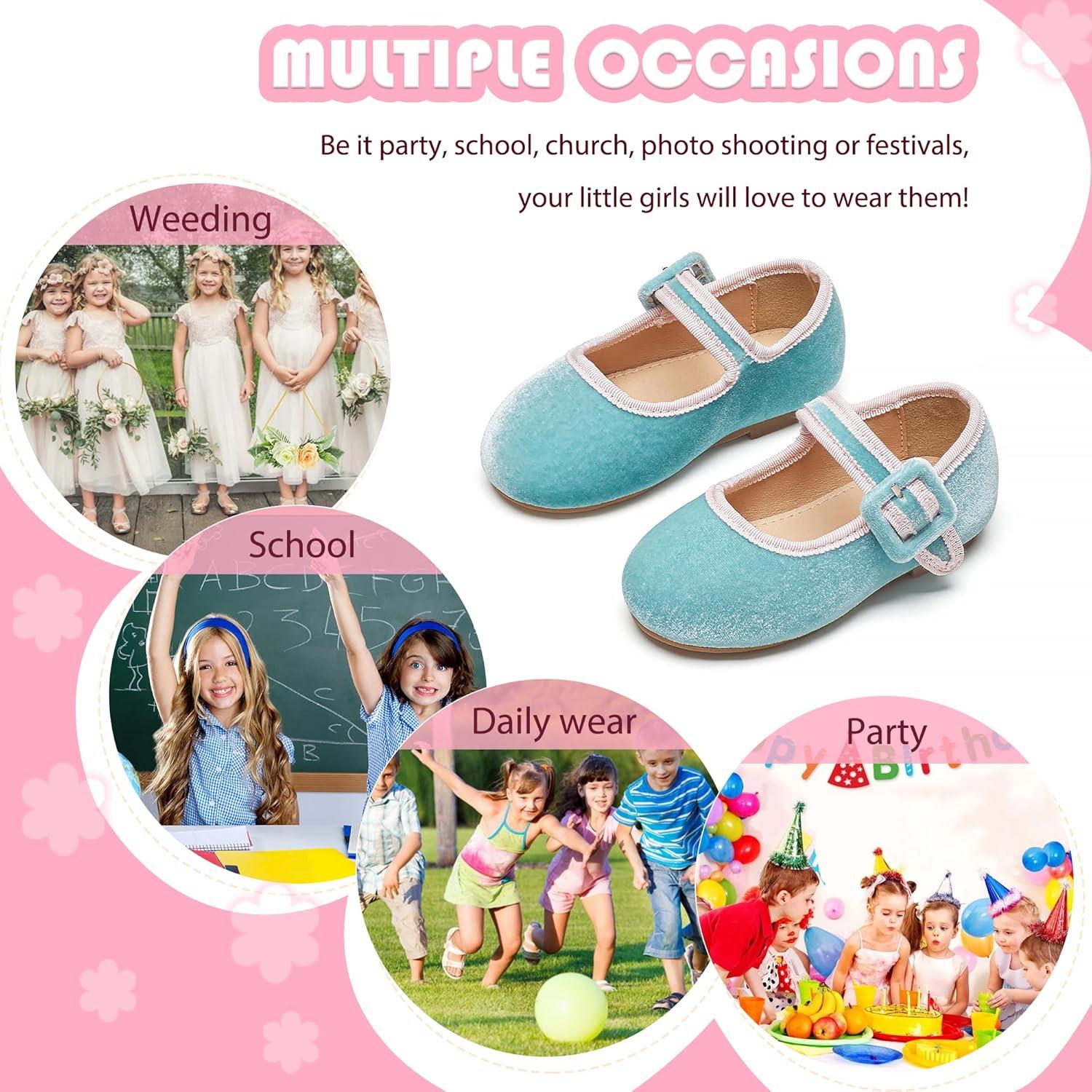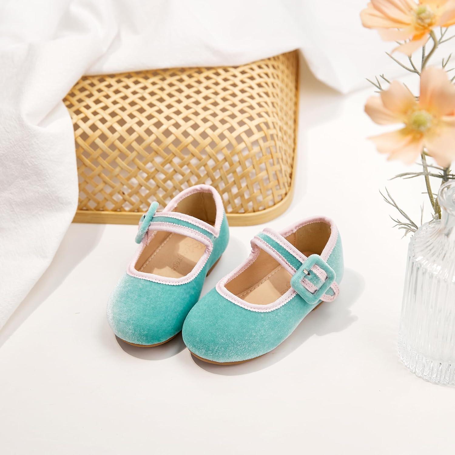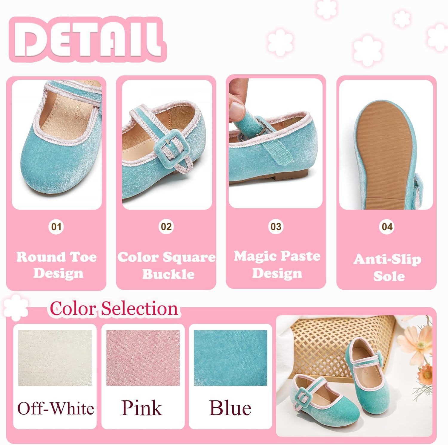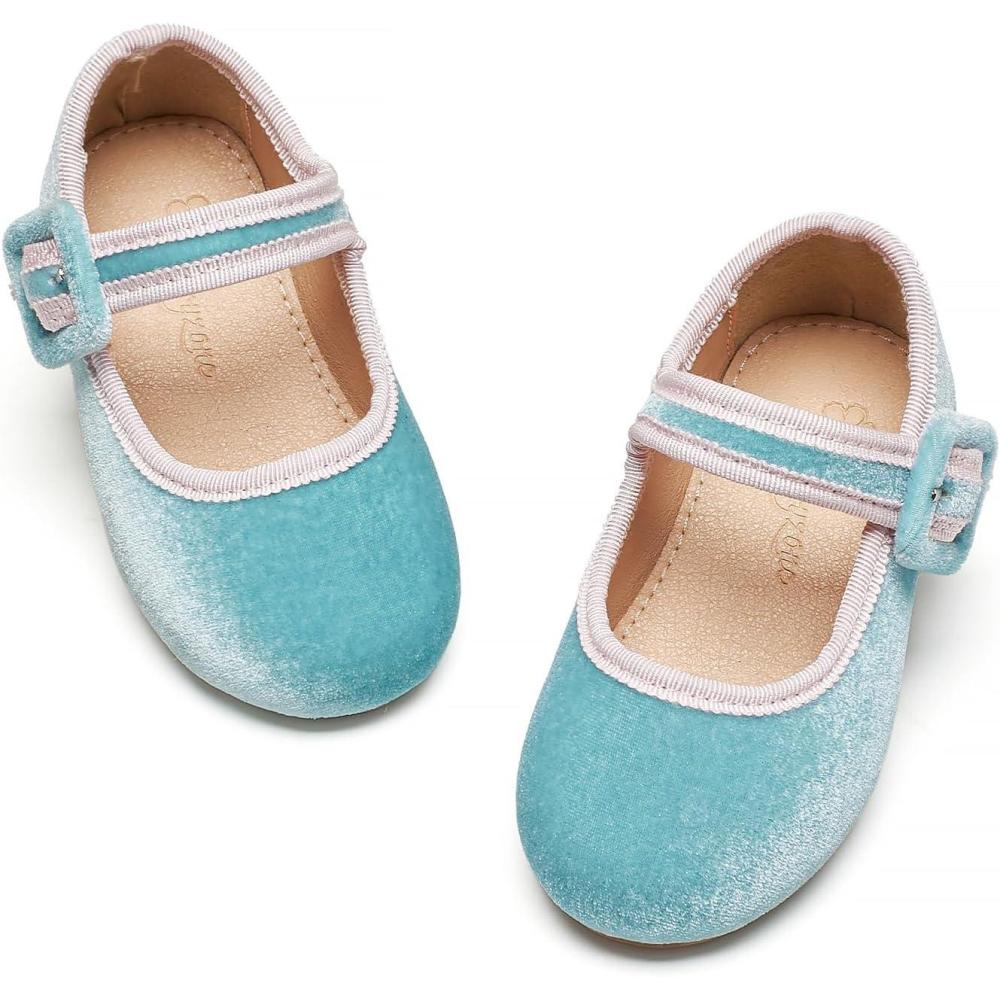 Flaryzone Toddler/Little Girls’ Ballerina Flat Mary Jane Princess Dress Shoes – Wedding School Party(Blue-fb03)