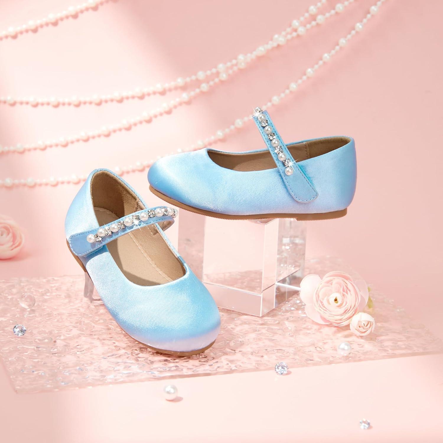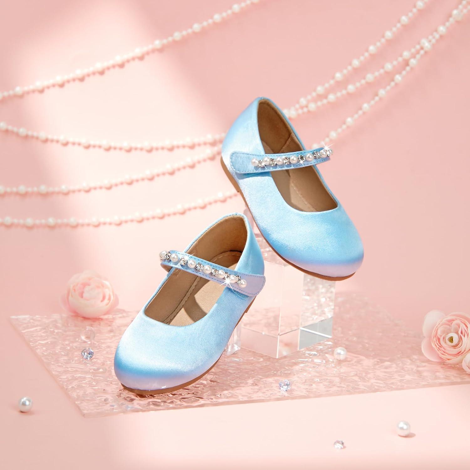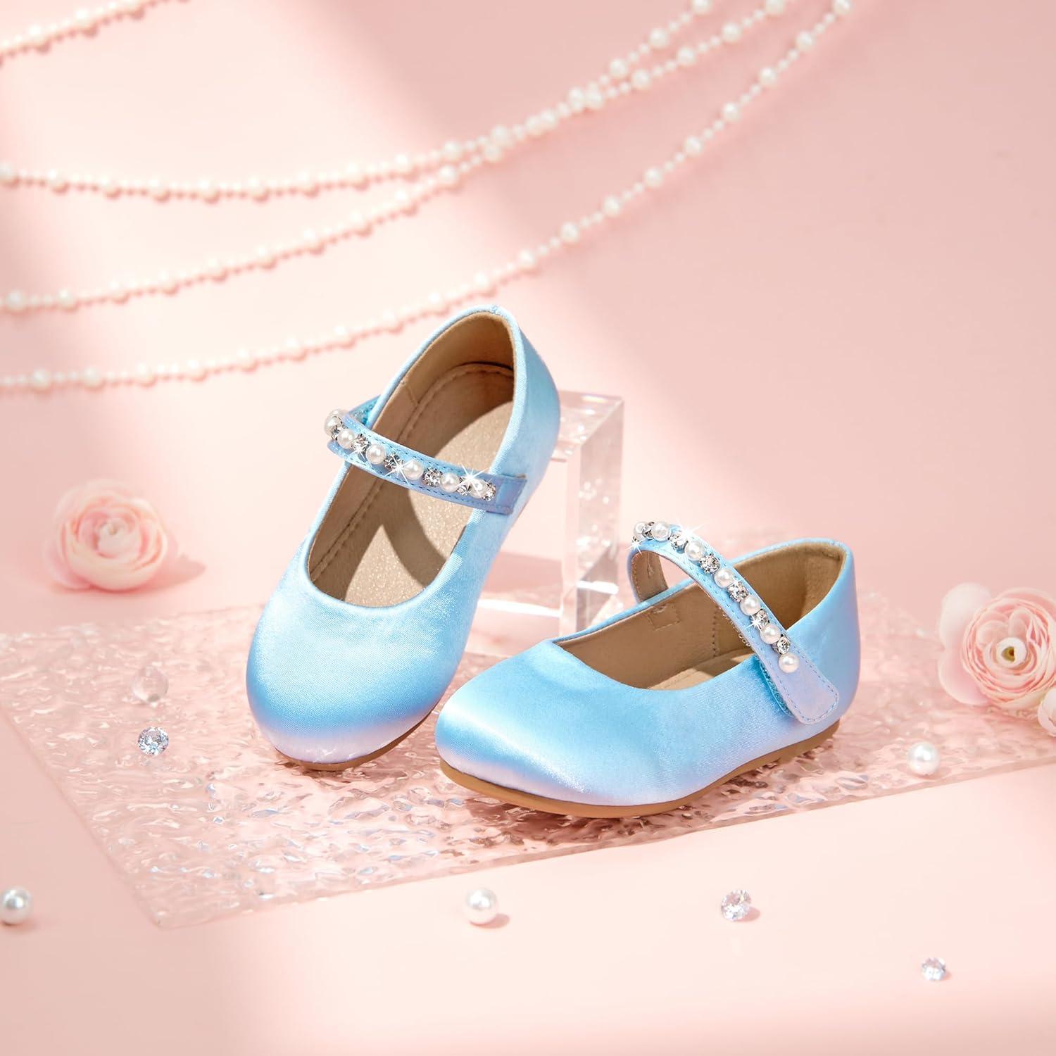 Flaryzone Toddler/Little Girls’ Ballerina Flat Mary Jane Princess Dress Shoes – Wedding School Party(Blue-fa19)