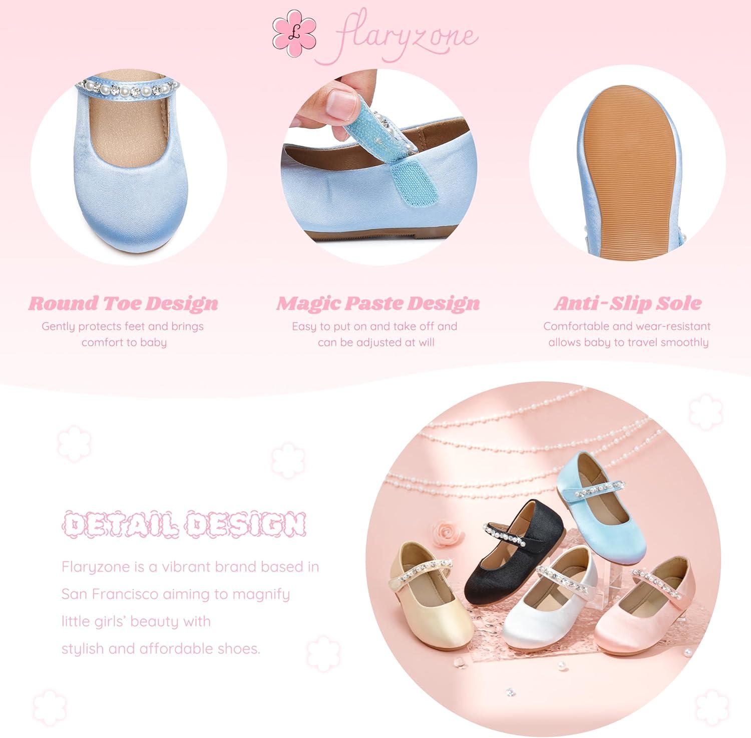 imageFlaryzone ToddlerLittle Girls Ballerina Flat Mary Jane Princess Dress Shoes  Wedding School PartyBluefa19