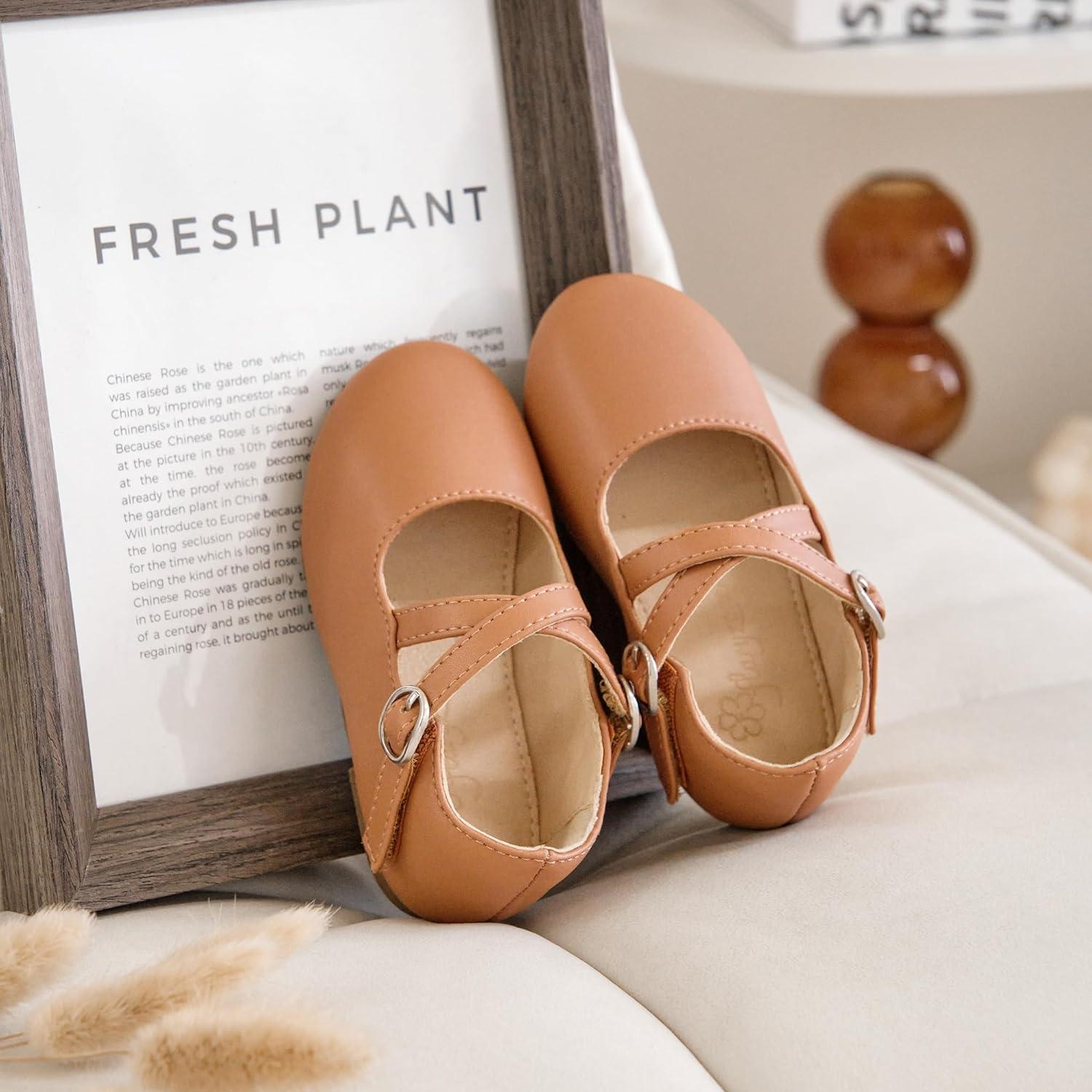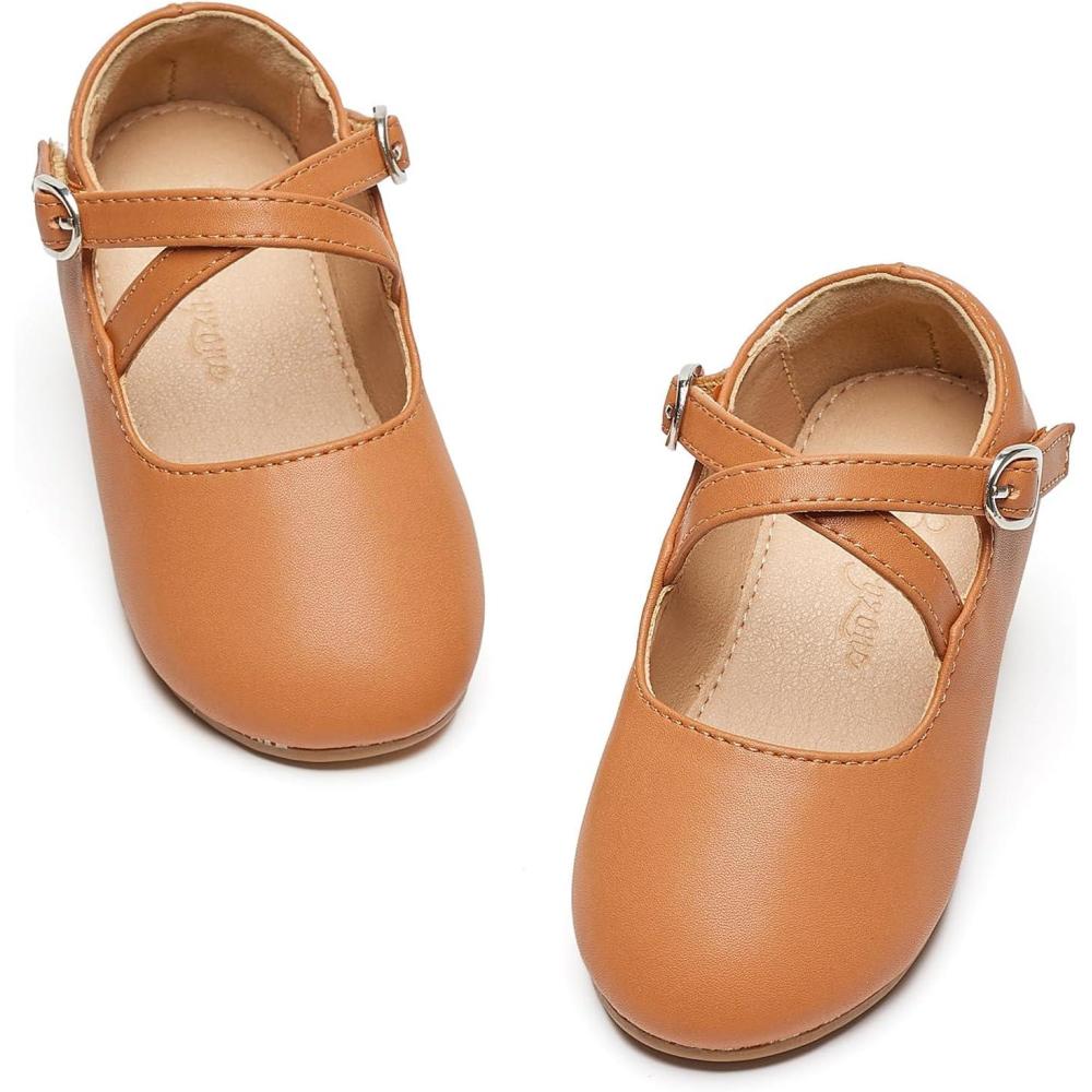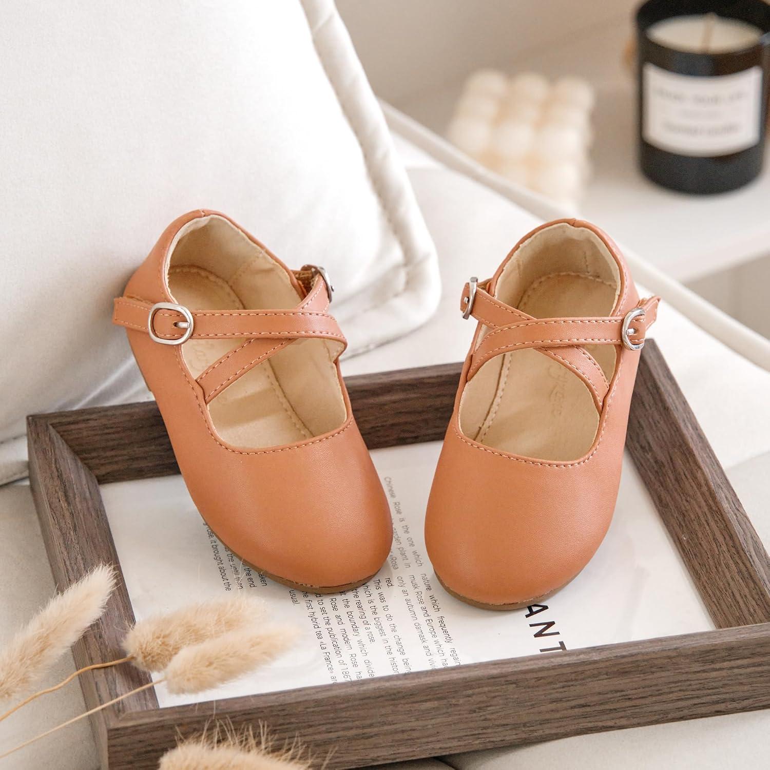 Flaryzone Toddler/Little Girls’ Ballerina Flat Mary Jane Princess Dress Shoes – Wedding School Party(Brown-fr11)