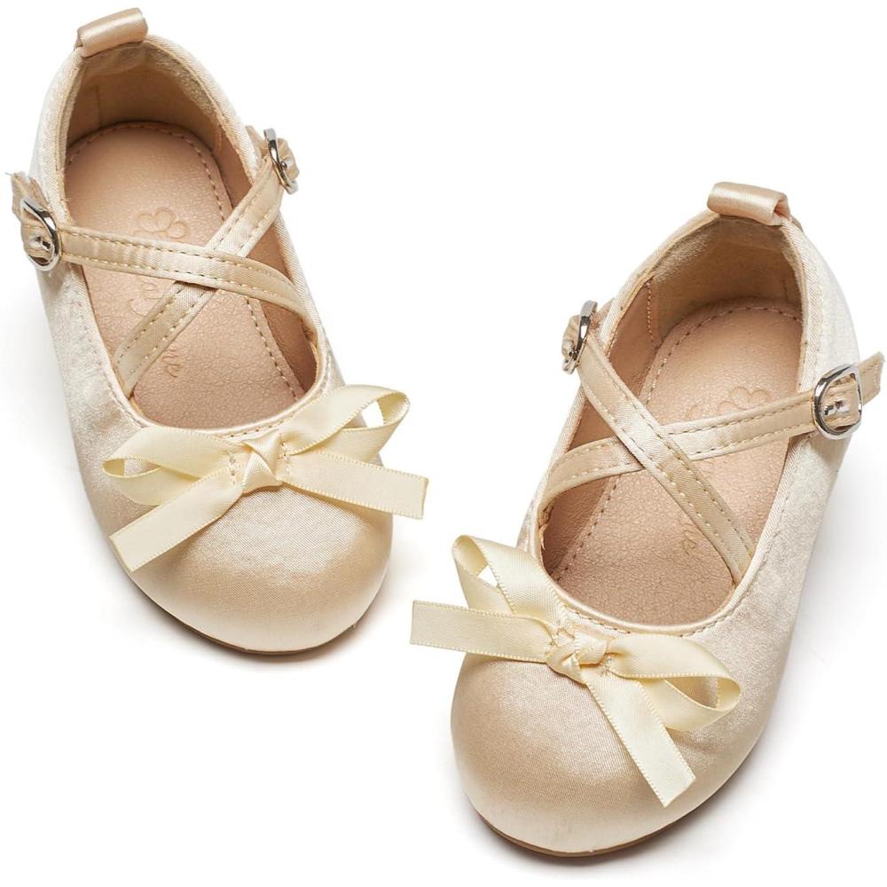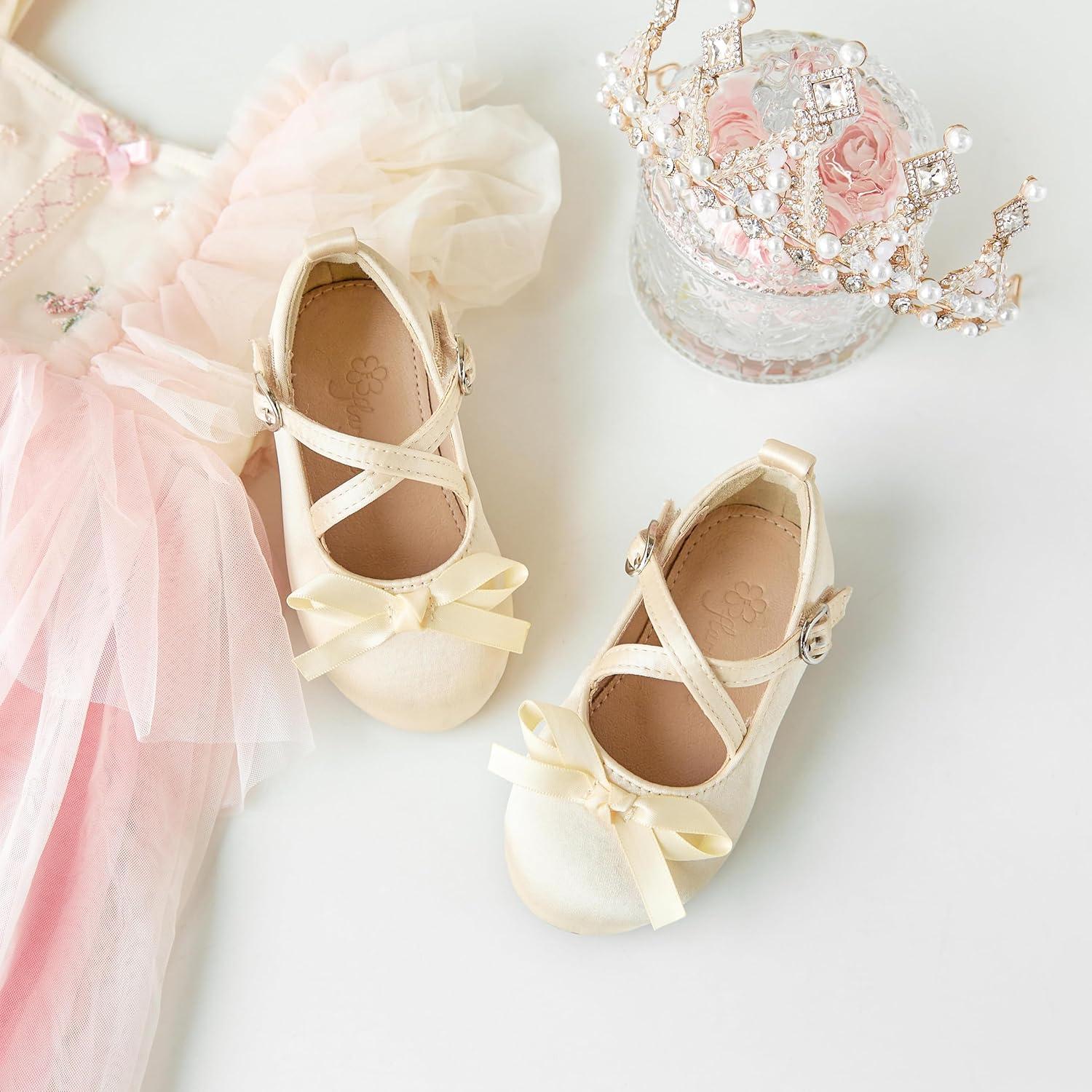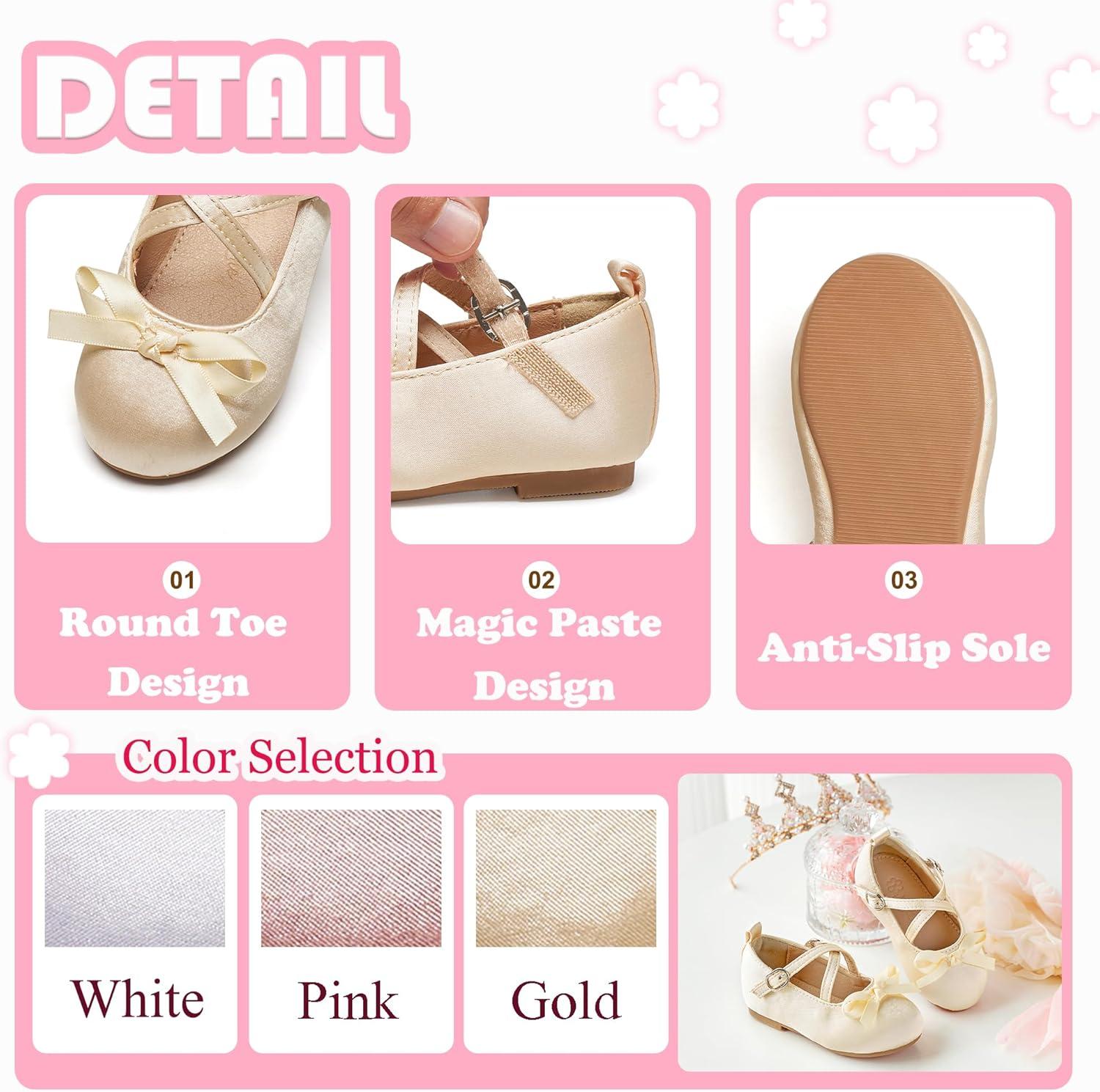 Flaryzone Toddler/Little Girls’ Ballerina Flat Mary Jane Princess Dress Shoes – Wedding School Party(Gold-fb03)