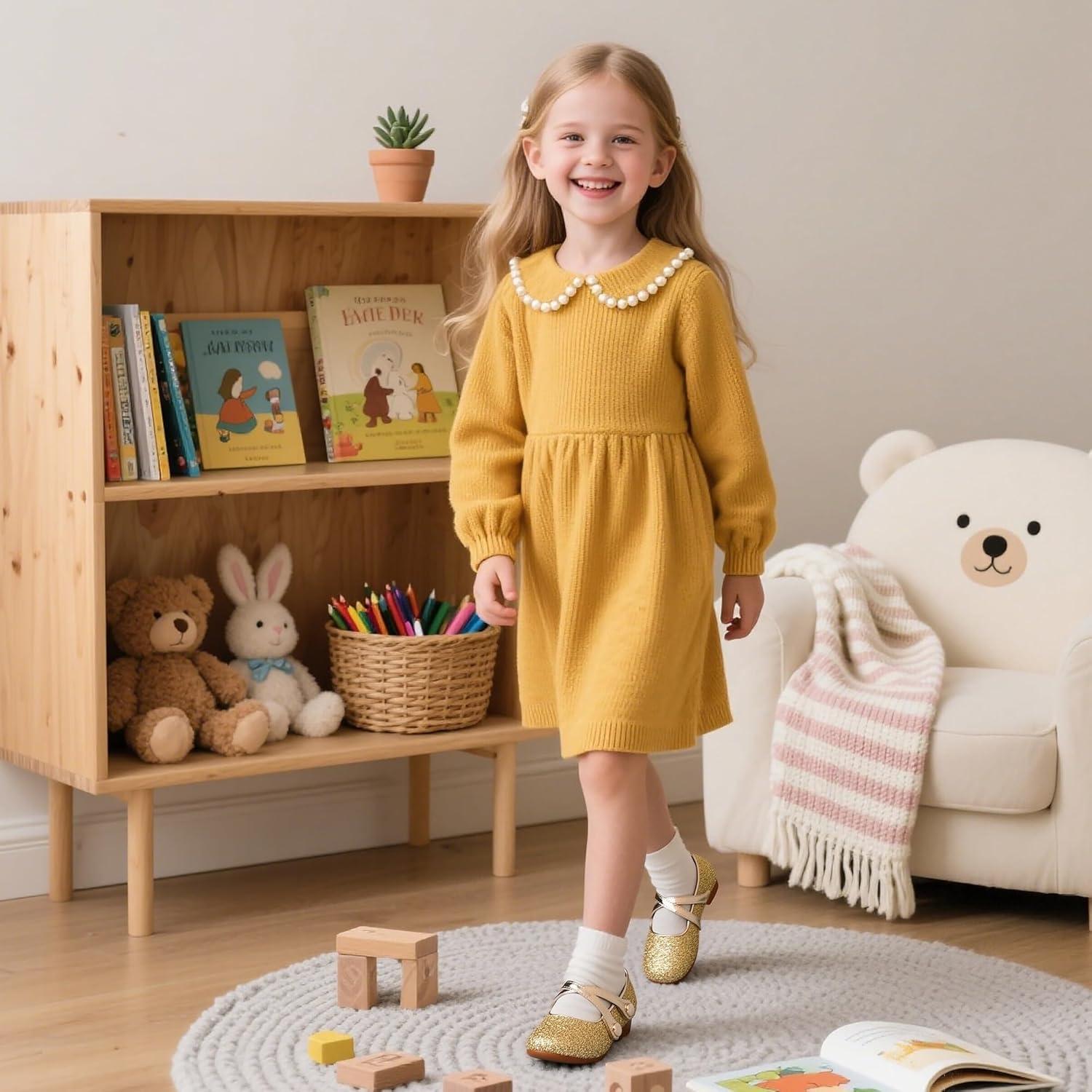 Flaryzone Toddler/Little Girls’ Ballerina Flat Mary Jane Princess Dress Shoes – Wedding School Party(Yellow-fa16)