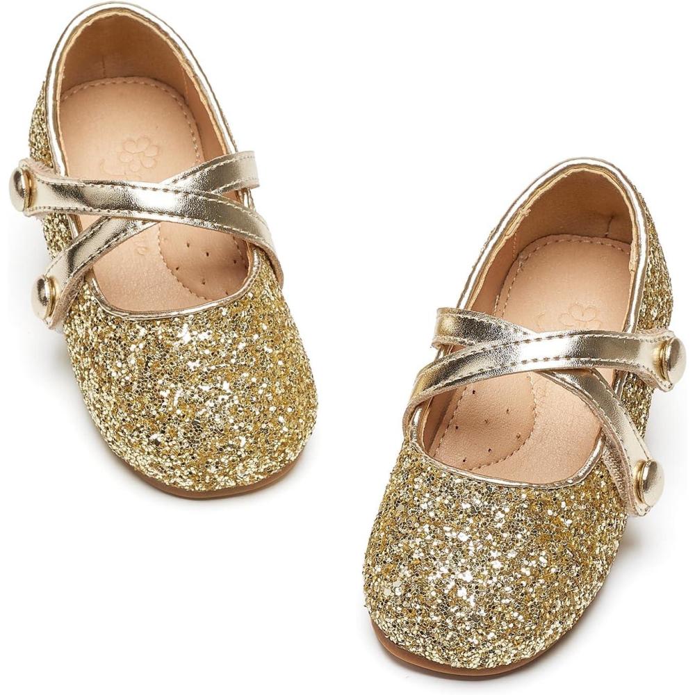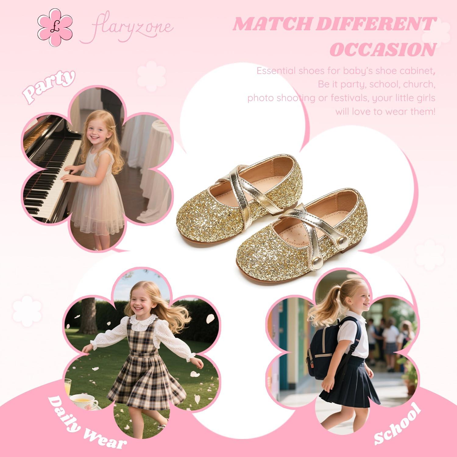Flaryzone Toddler/Little Girls’ Ballerina Flat Mary Jane Princess Dress Shoes – Wedding School Party(Gold-fb02)