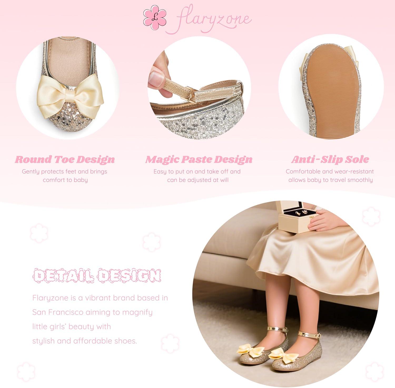 Flaryzone Toddler/Little Girls’ Ballerina Flat Mary Jane Princess Dress Shoes – Wedding School Party(Gold-fa12)