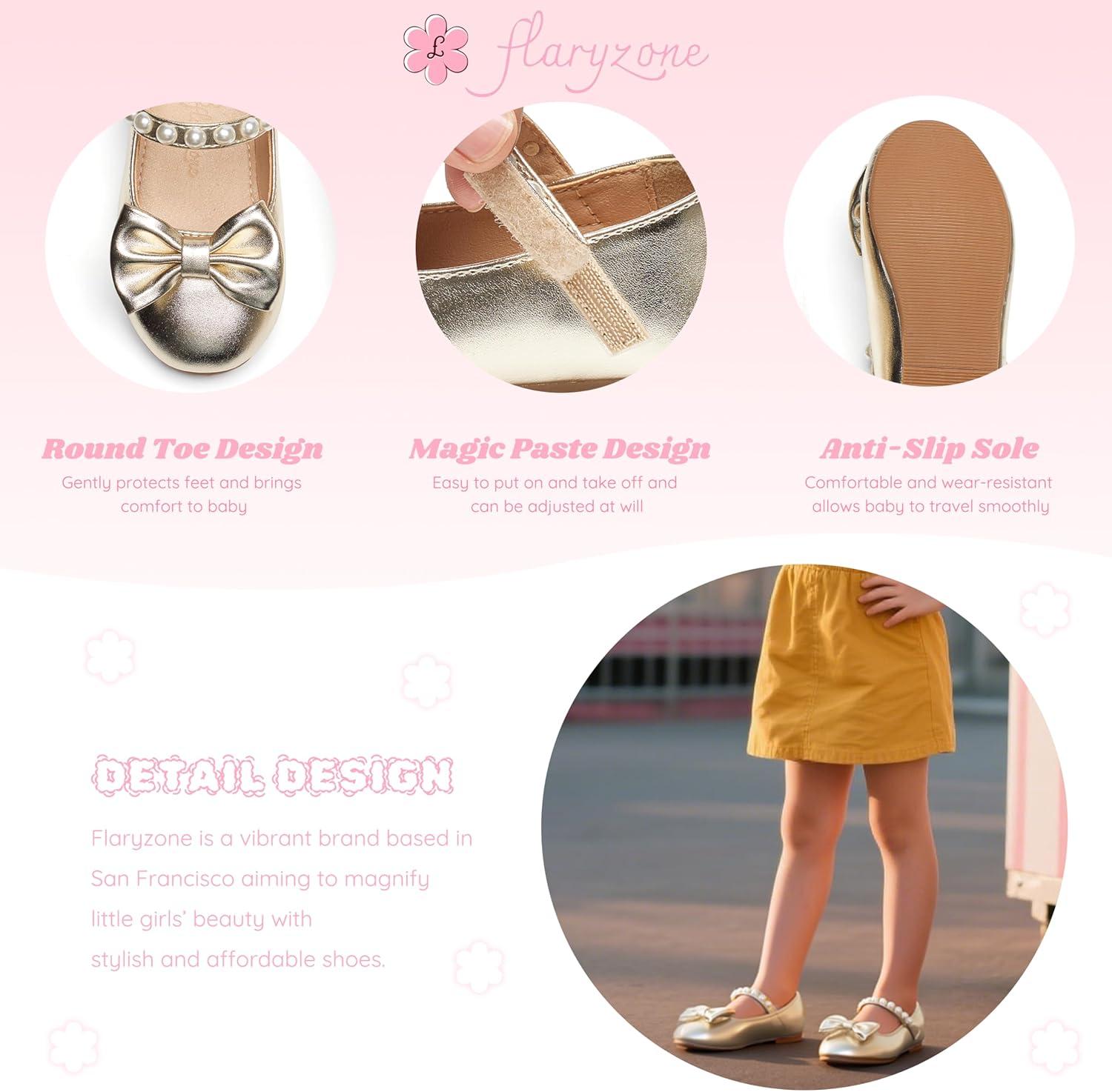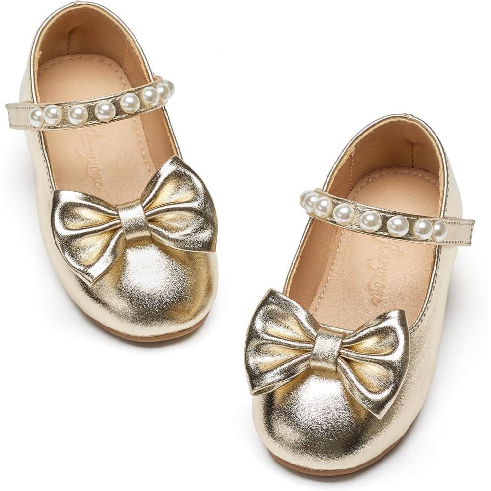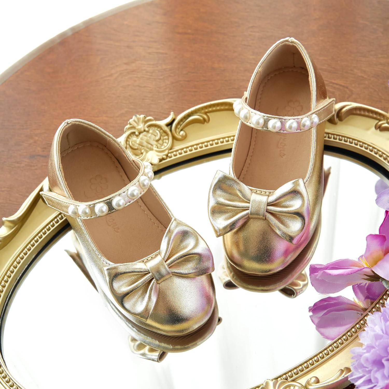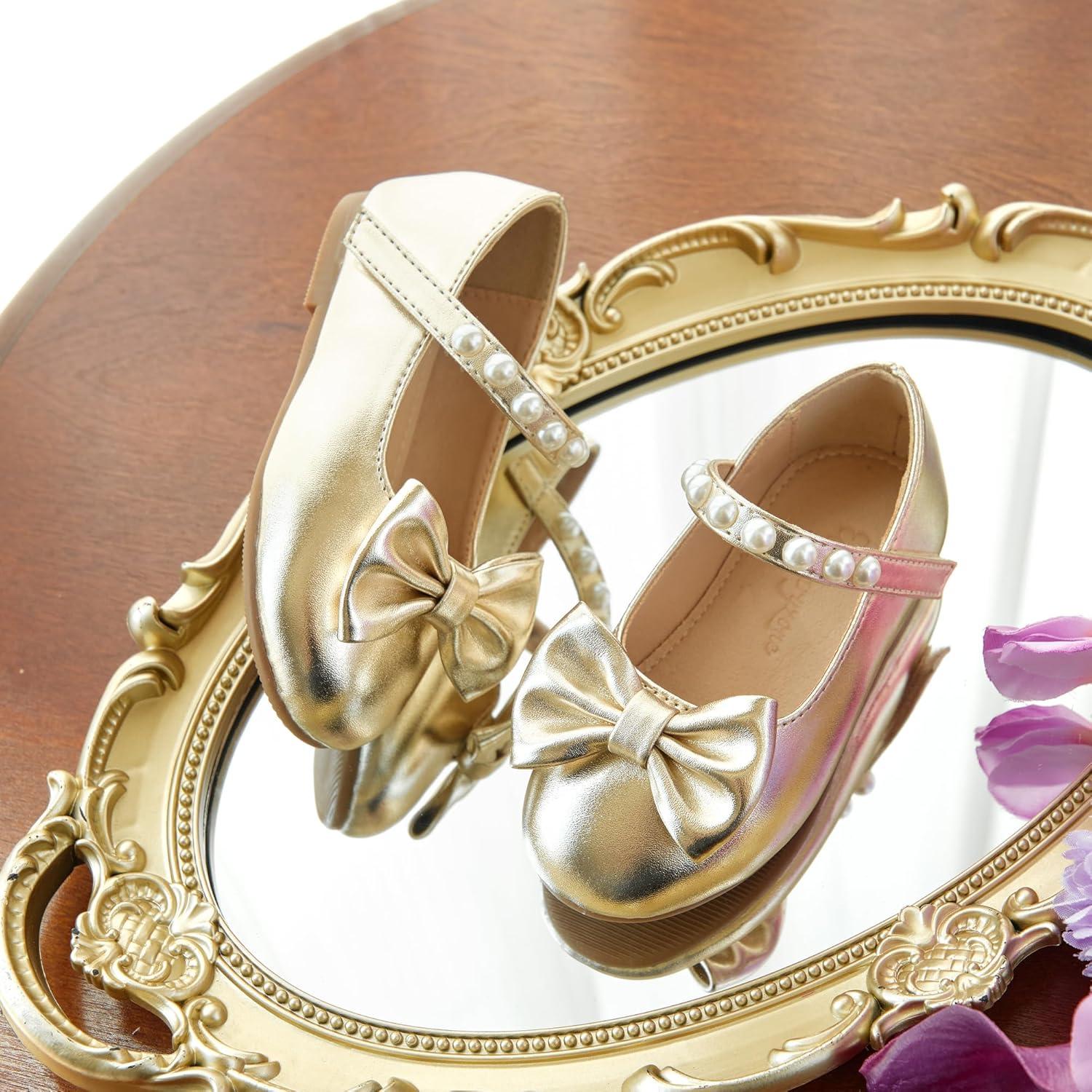 Flaryzone Toddler/Little Girls’ Ballerina Flat Mary Jane Princess Dress Shoes – Wedding School Party(Gold-fm18)