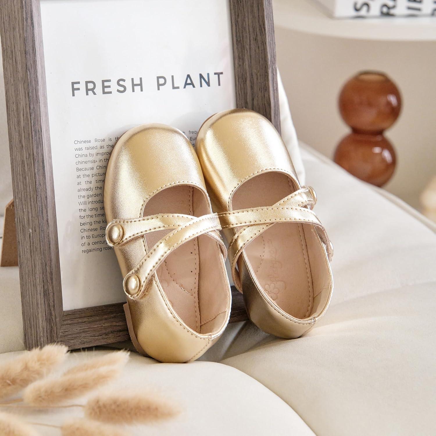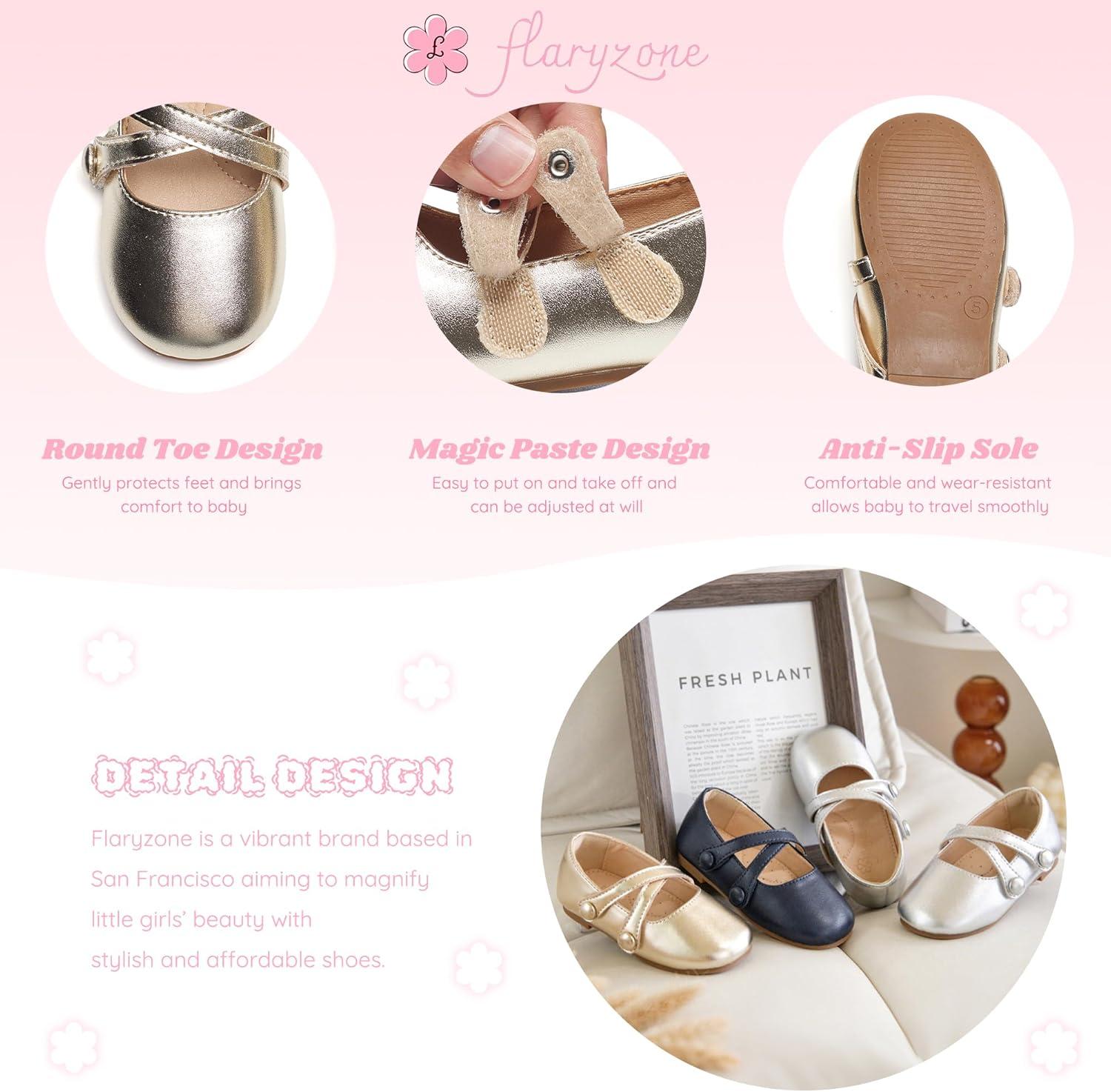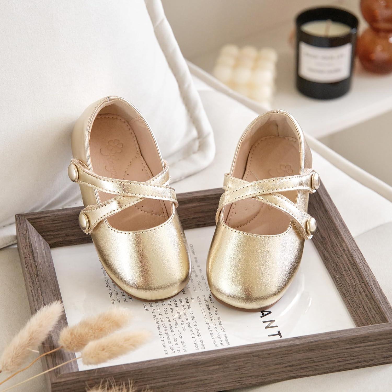 Flaryzone Toddler/Little Girls’ Ballerina Flat Mary Jane Princess Dress Shoes – Wedding School Party(Gold-fr381)