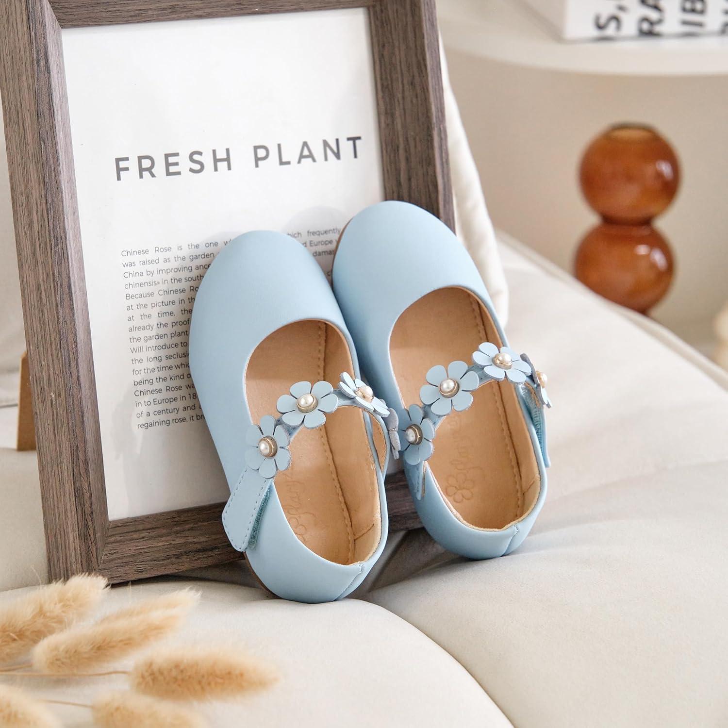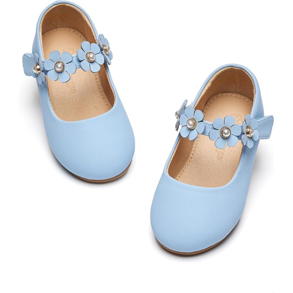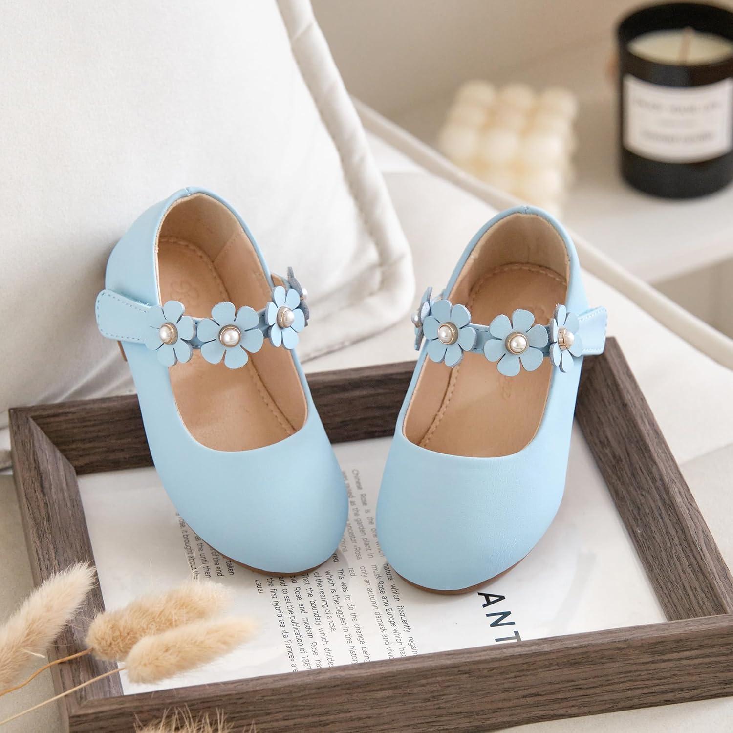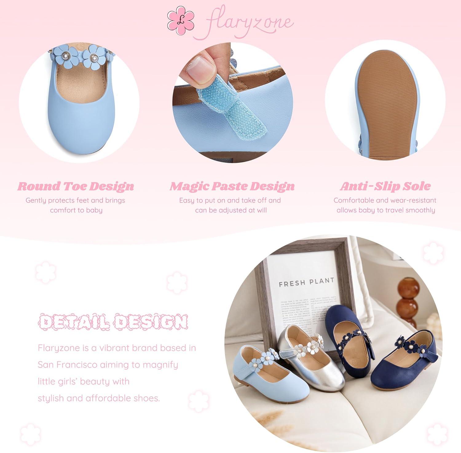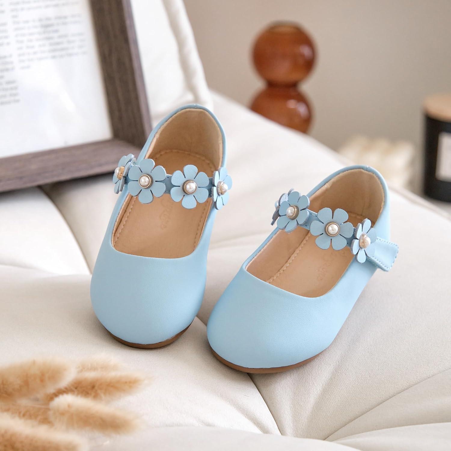 Flaryzone Toddler/Little Girls’ Ballerina Flat Mary Jane Princess Dress Shoes – Wedding School Party(Light Blue-fm18)