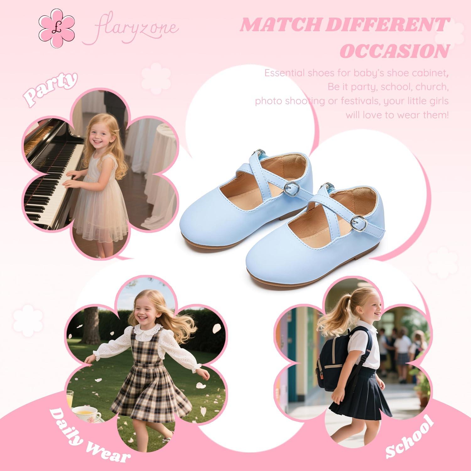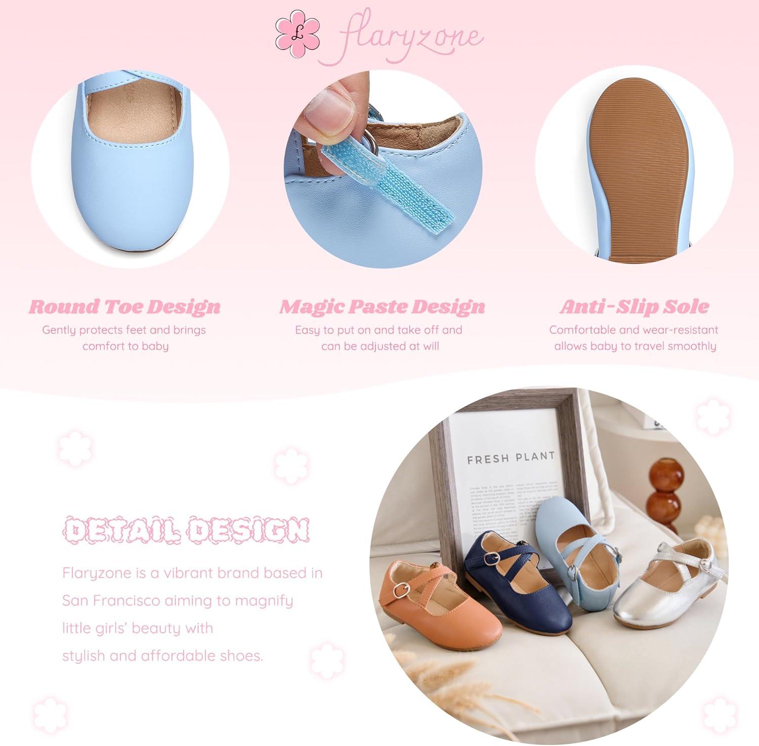 Flaryzone Toddler/Little Girls’ Ballerina Flat Mary Jane Princess Dress Shoes – Wedding School Party(Light Blue-fr11)