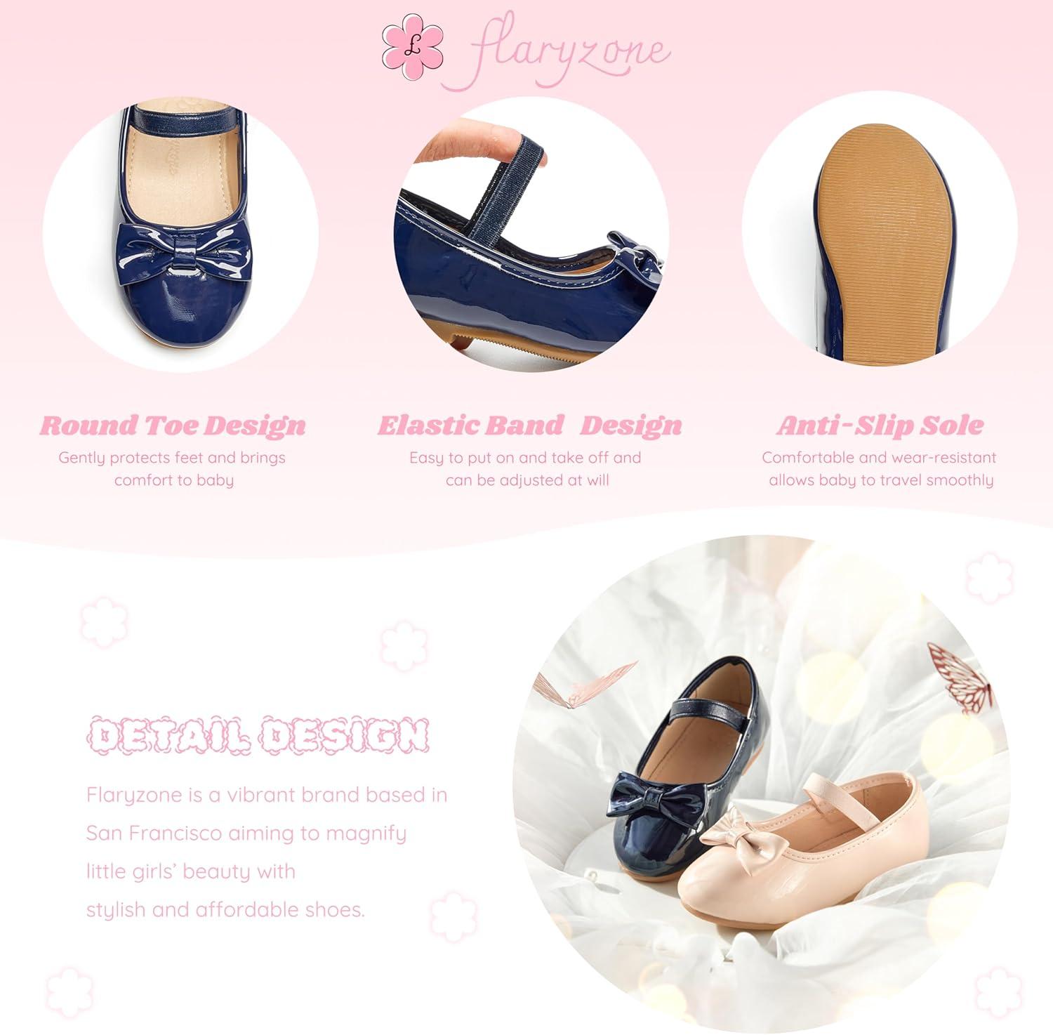 Flaryzone Toddler/Little Girls’ Ballerina Flat Mary Jane Princess Dress Shoes – Wedding School Party(Navy Blue-flr07)