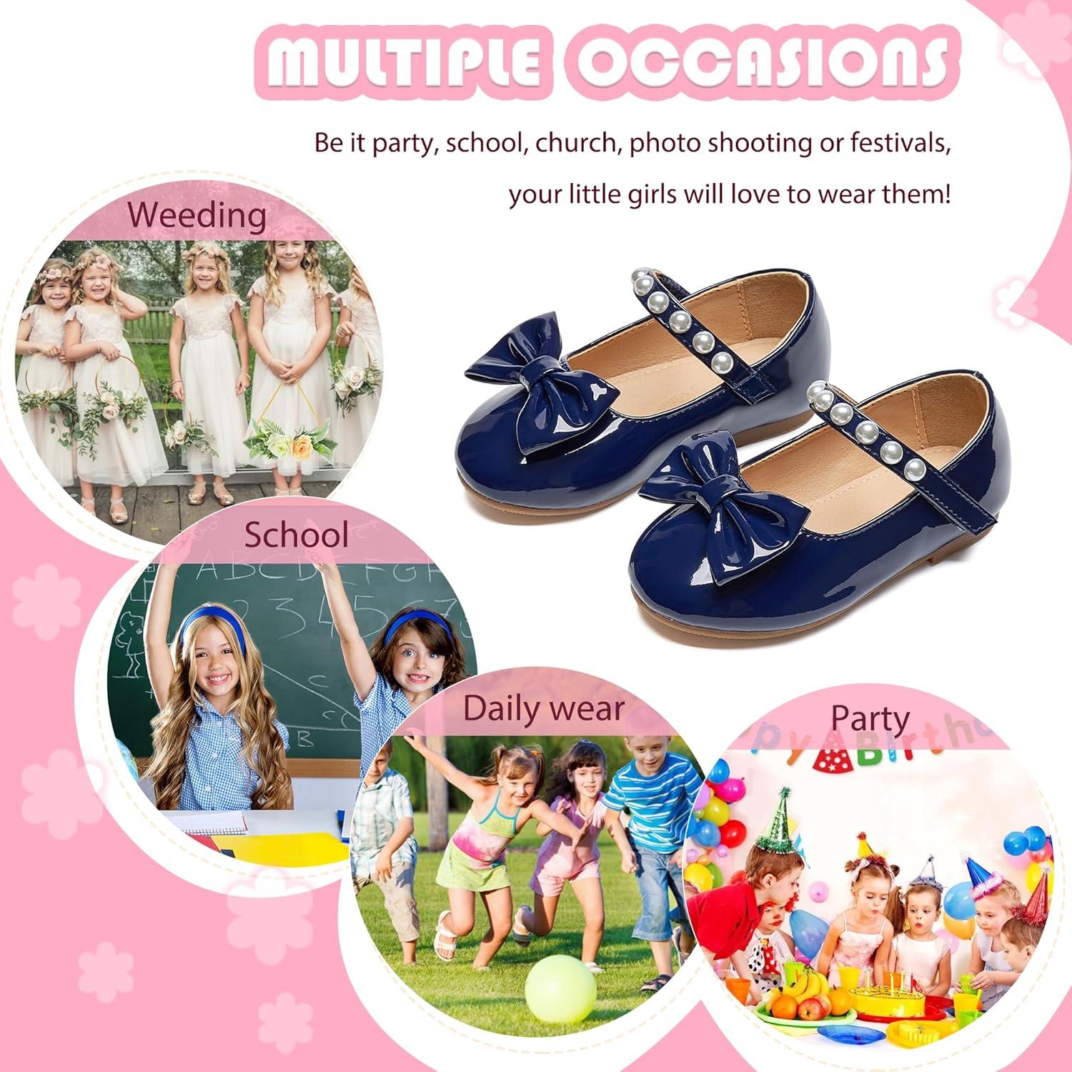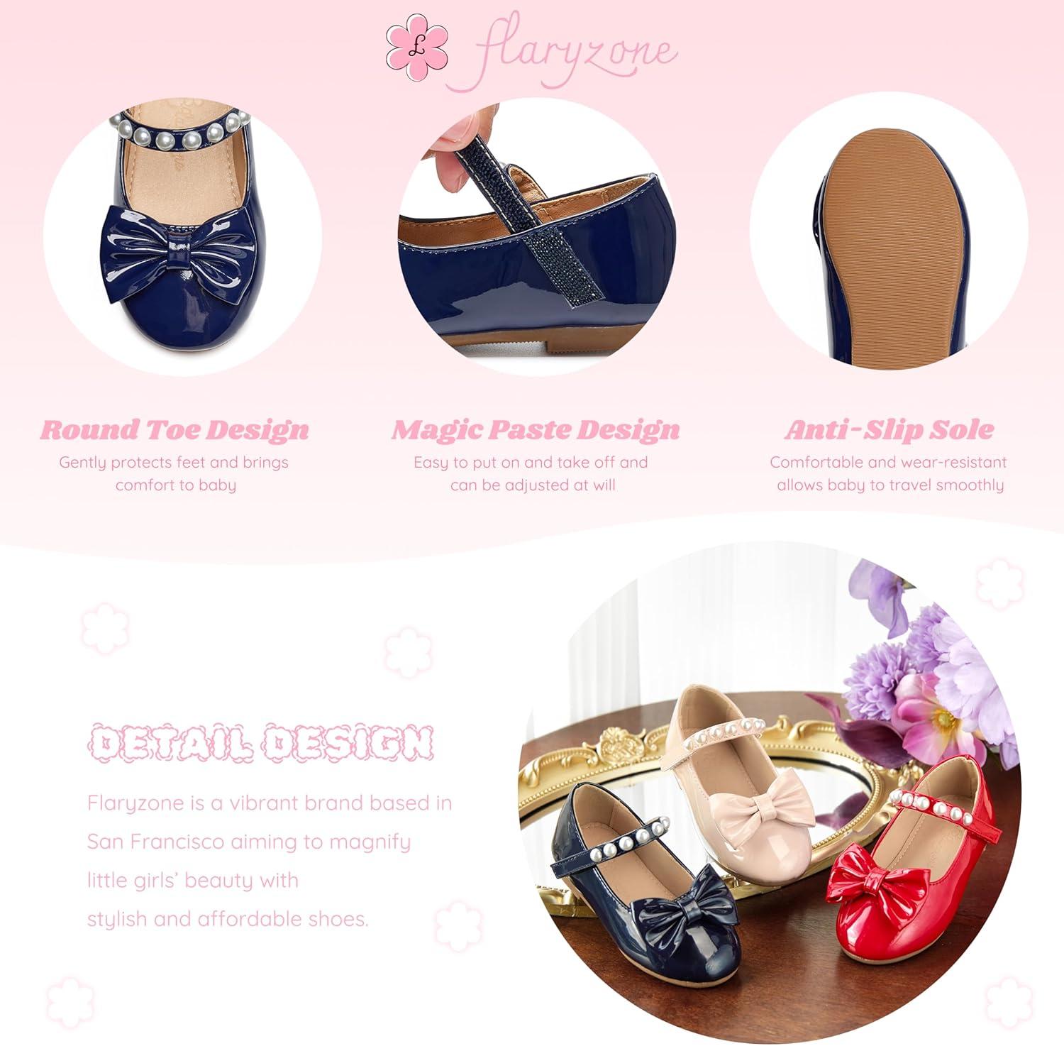 Flaryzone Toddler/Little Girls’ Ballerina Flat Mary Jane Princess Dress Shoes – Wedding School Party(Navy Blue-fm17)