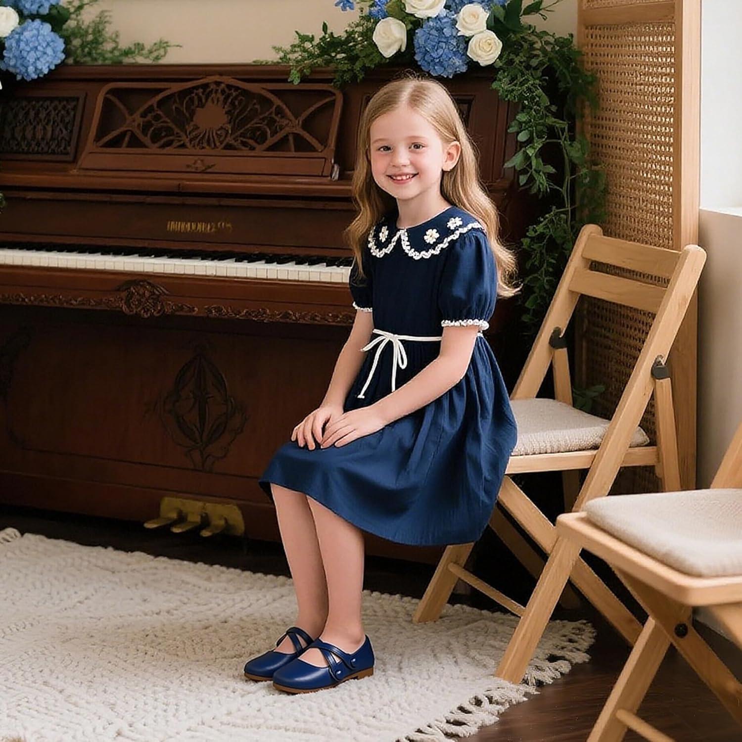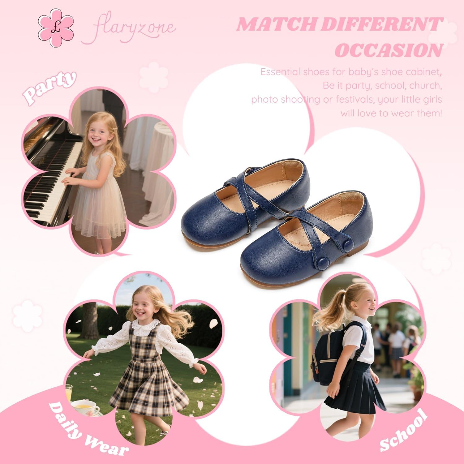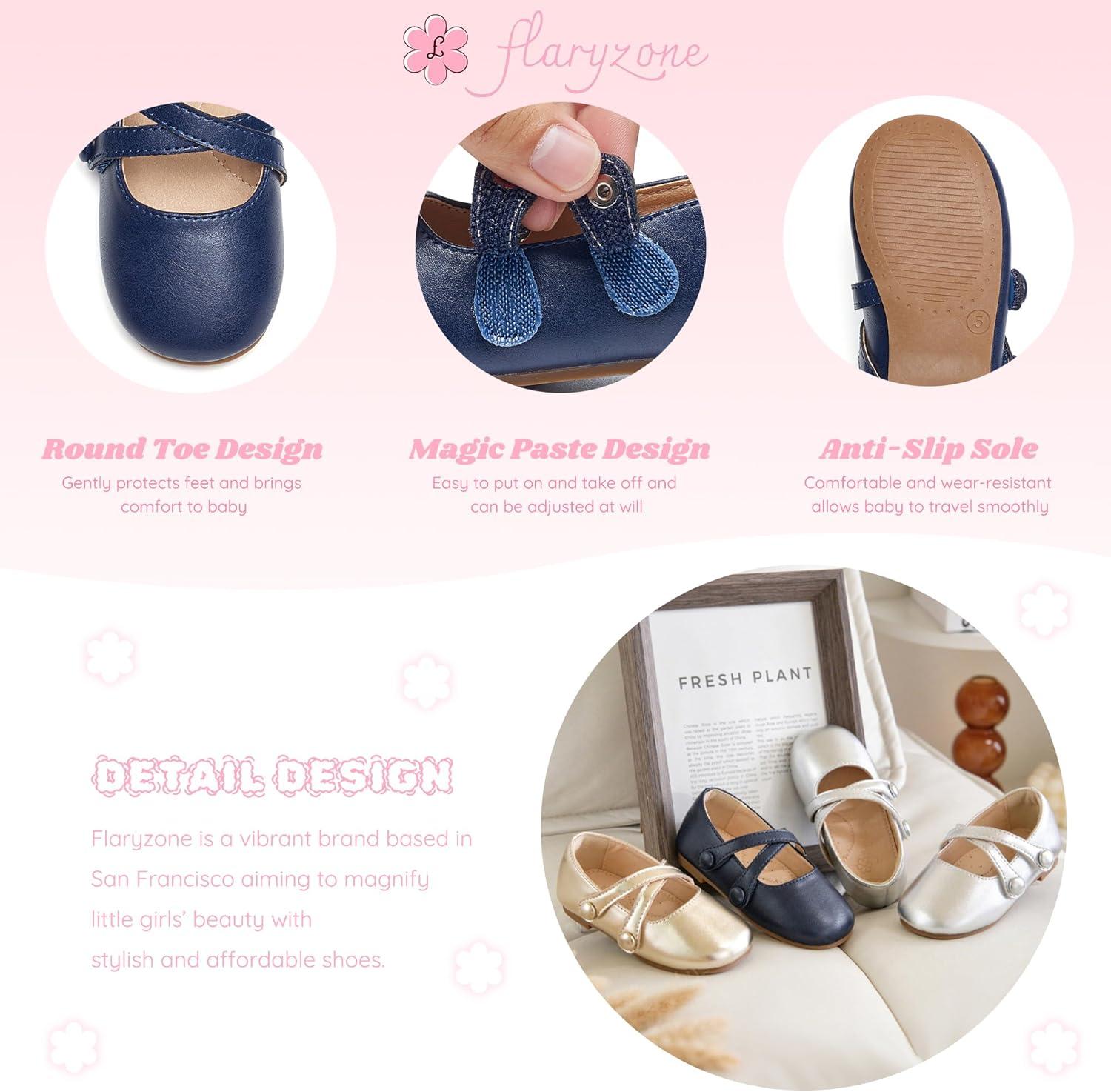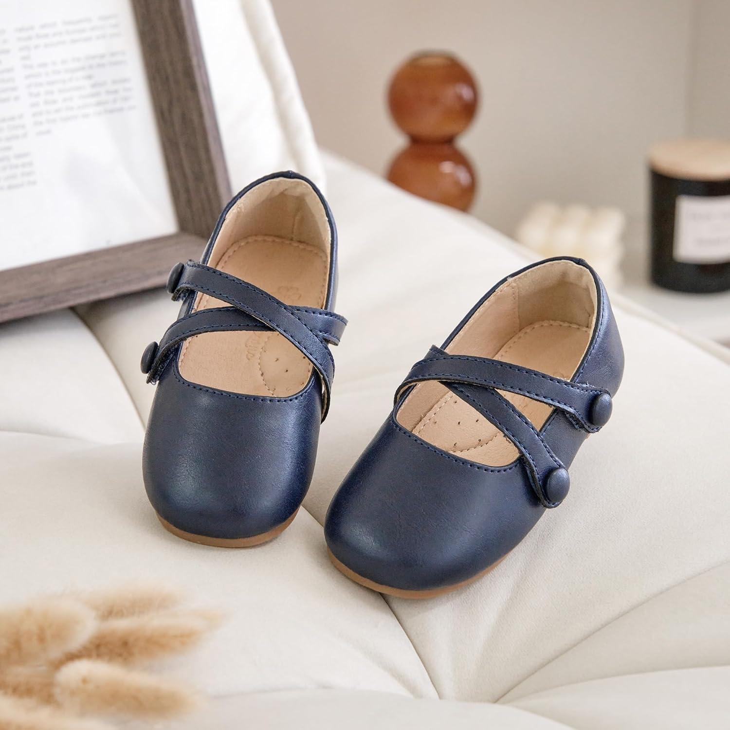 Flaryzone Toddler/Little Girls’ Ballerina Flat Mary Jane Princess Dress Shoes – Wedding School Party(Navy Blue-fr11)