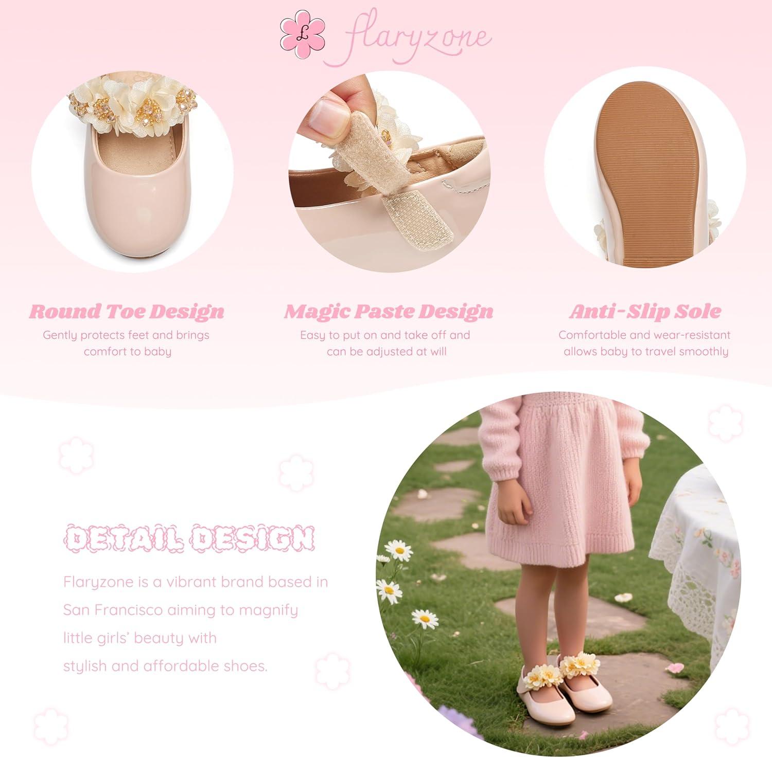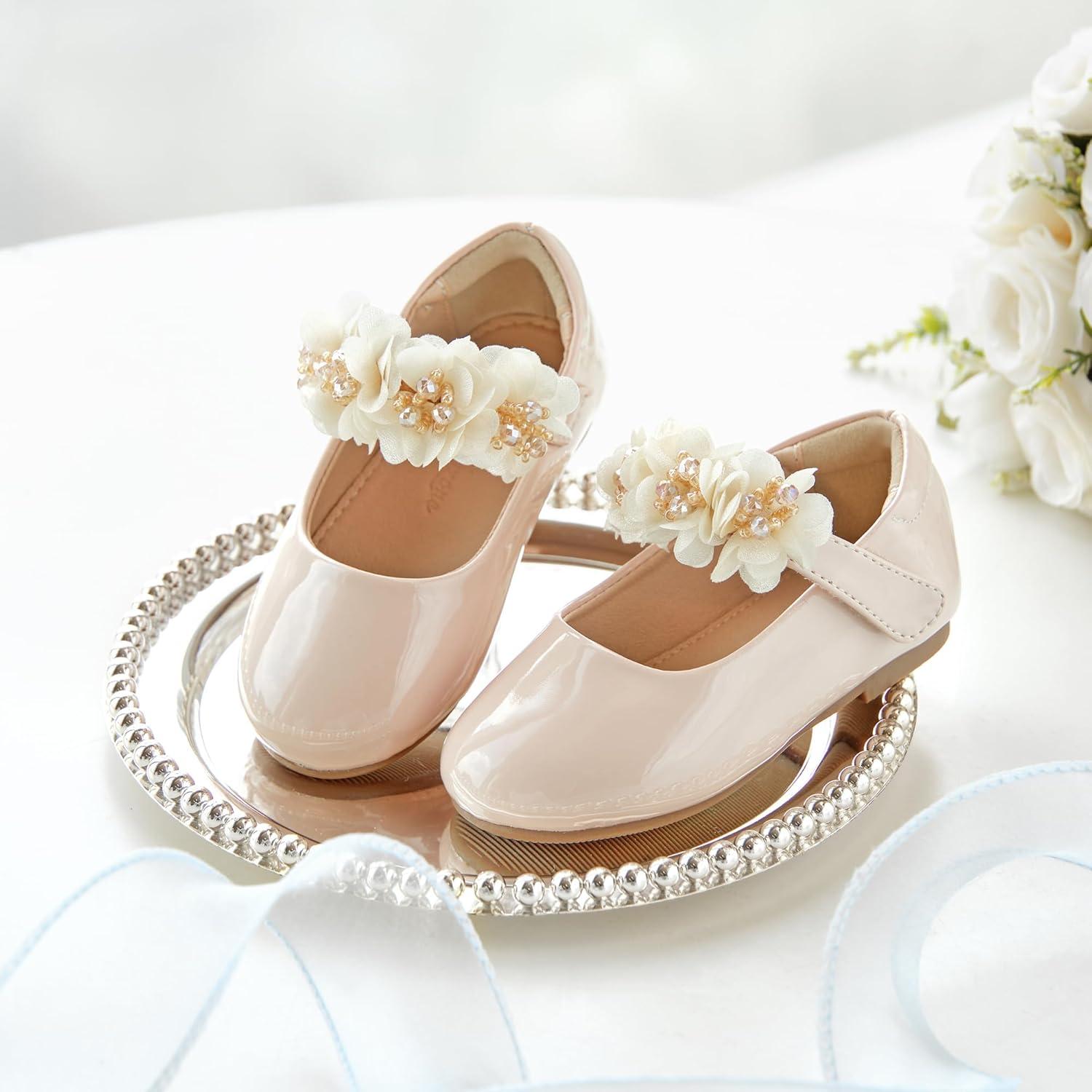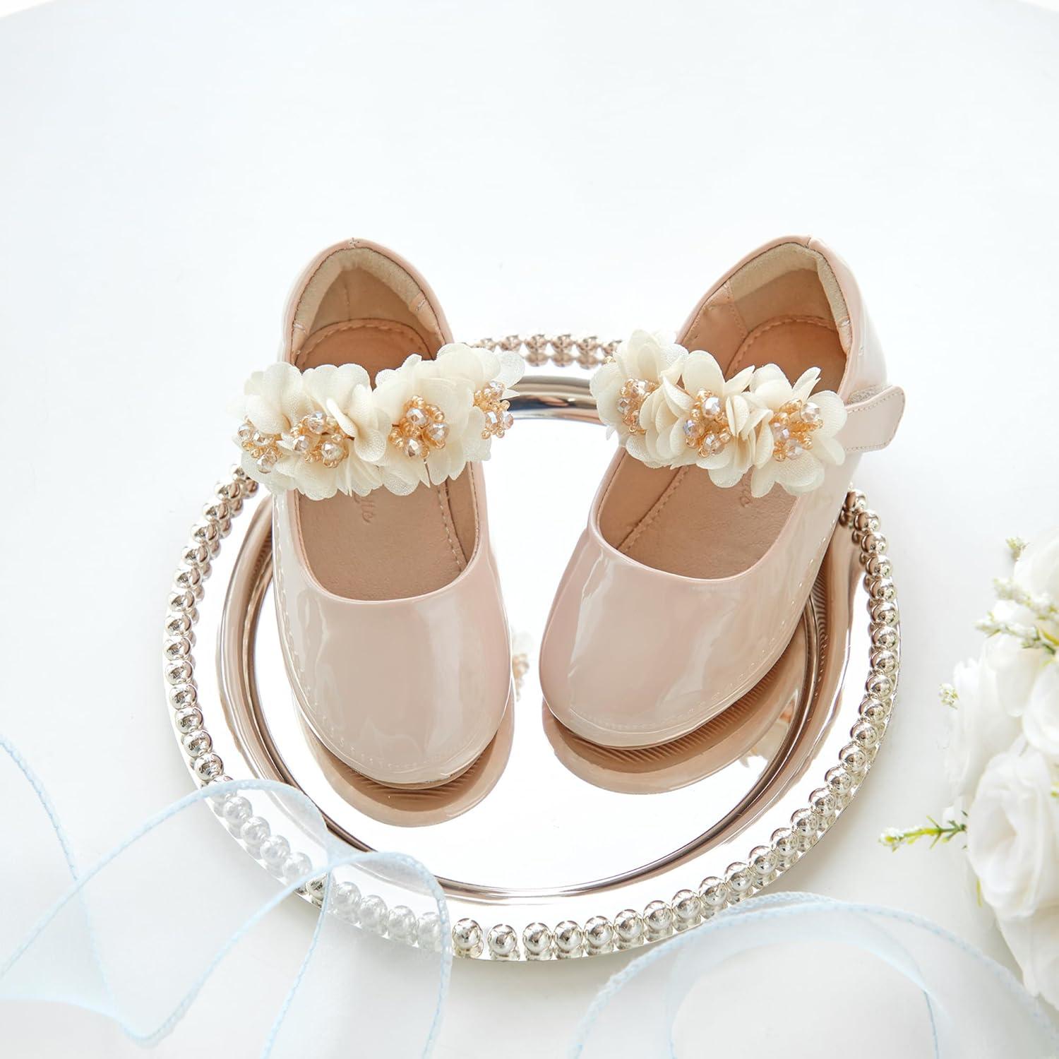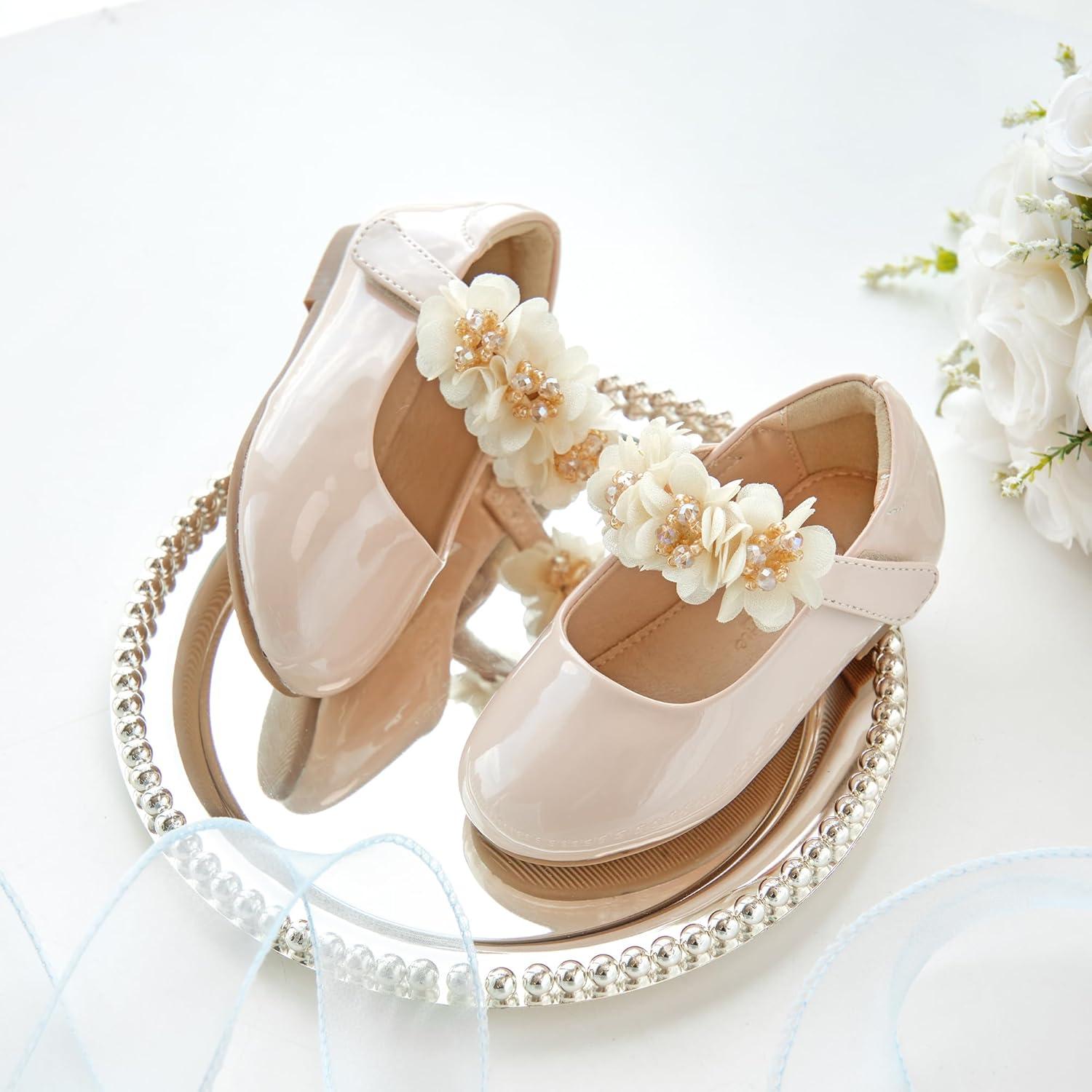 Flaryzone Toddler/Little Girls’ Ballerina Flat Mary Jane Princess Dress Shoes – Wedding School Party(Nude-fm17)