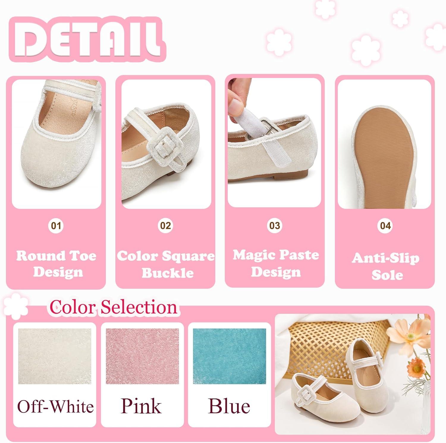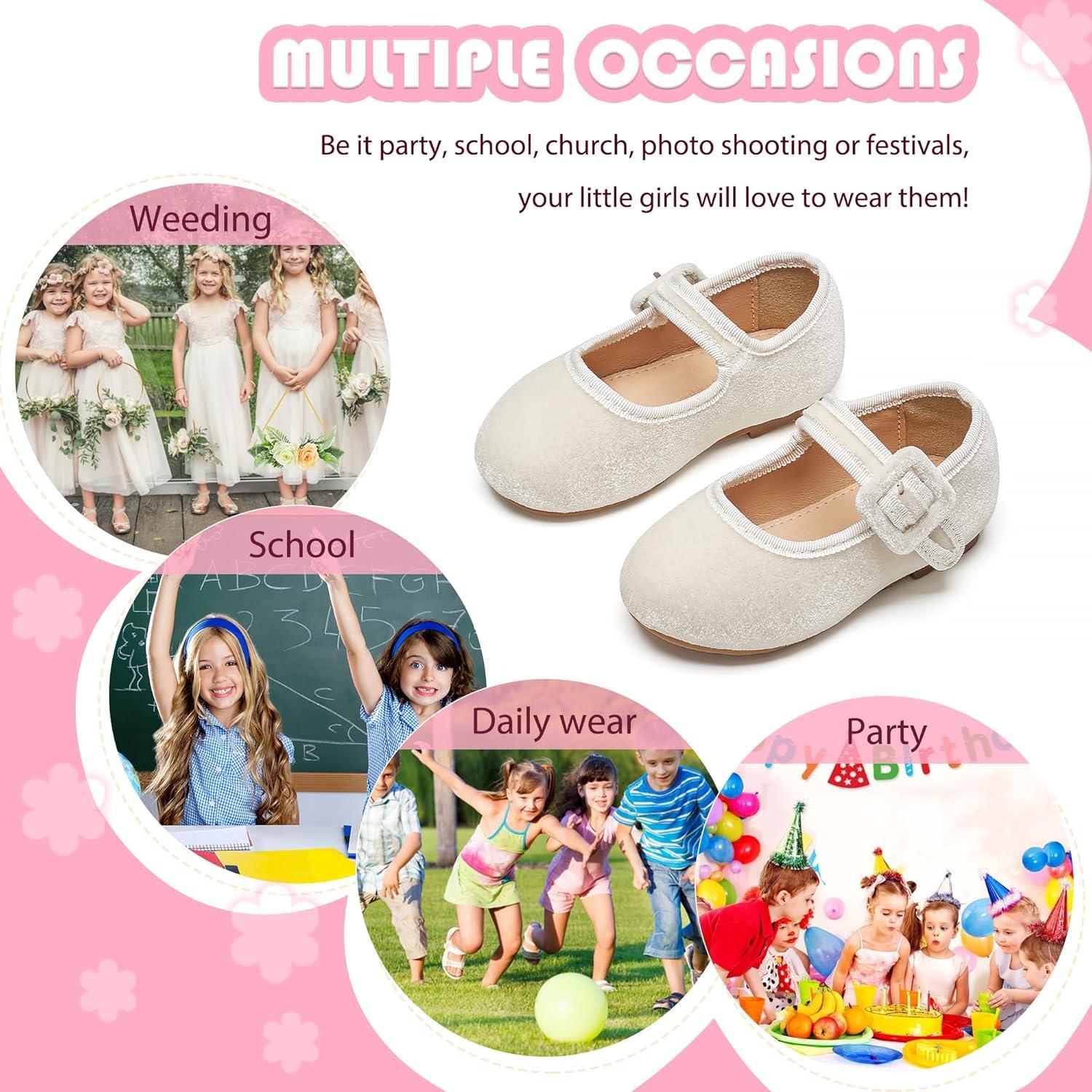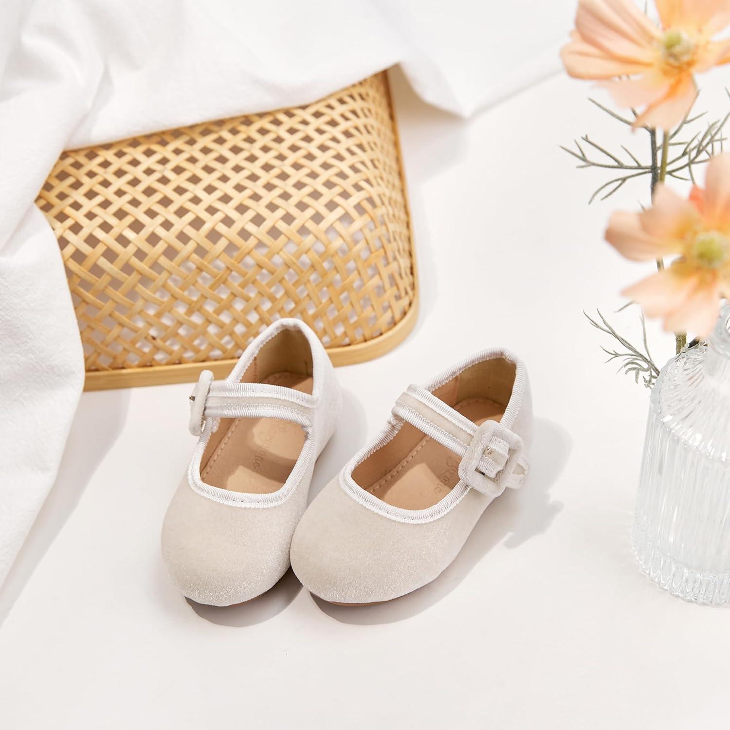 Flaryzone Toddler/Little Girls’ Ballerina Flat Mary Jane Princess Dress Shoes – Wedding School Party(Off-white-fa11)