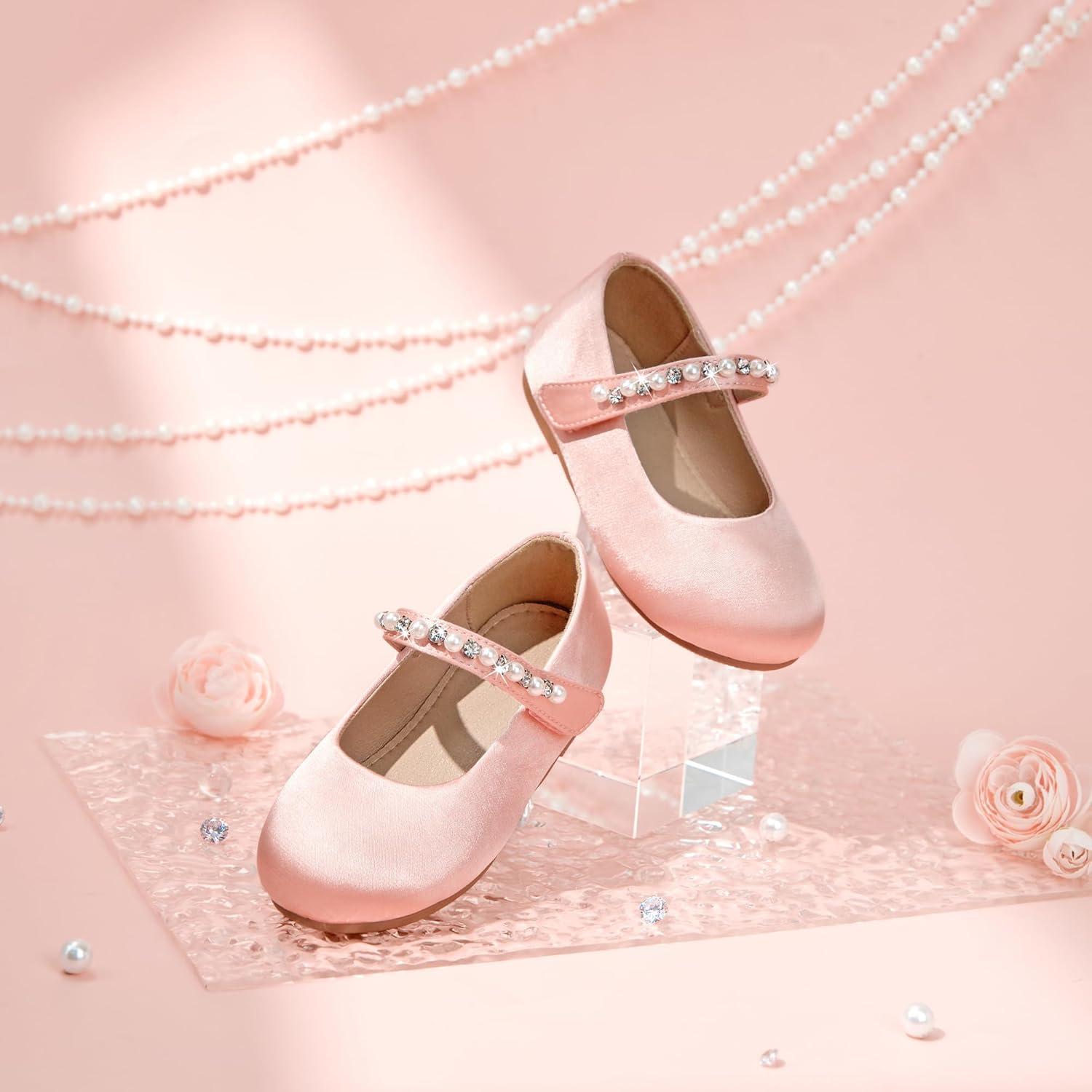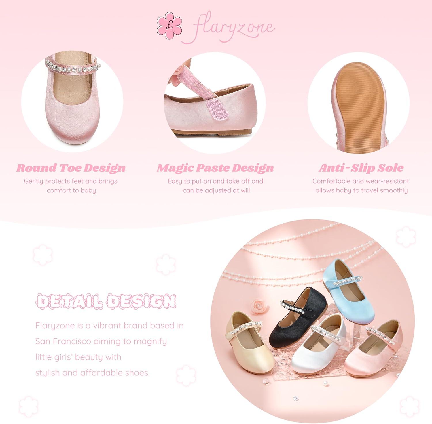 Flaryzone Toddler/Little Girls’ Ballerina Flat Mary Jane Princess Dress Shoes – Wedding School Party(Pink-fa19)