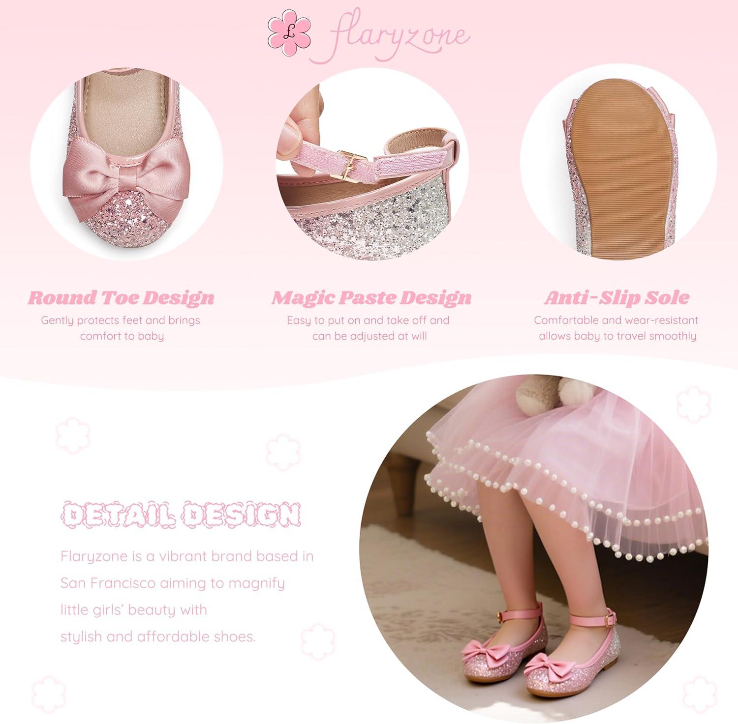 Flaryzone Toddler/Little Girls’ Ballerina Flat Mary Jane Princess Dress Shoes – Wedding School Party(Pink-fb03)