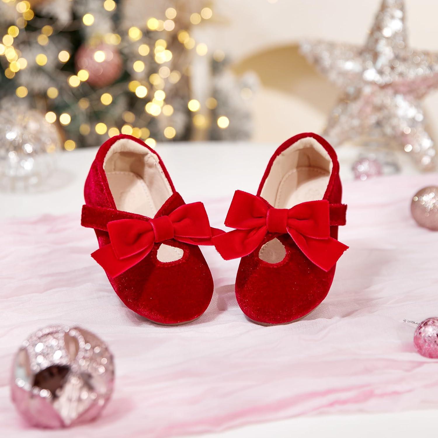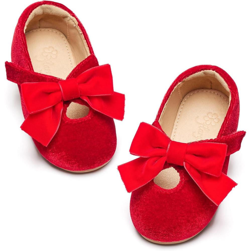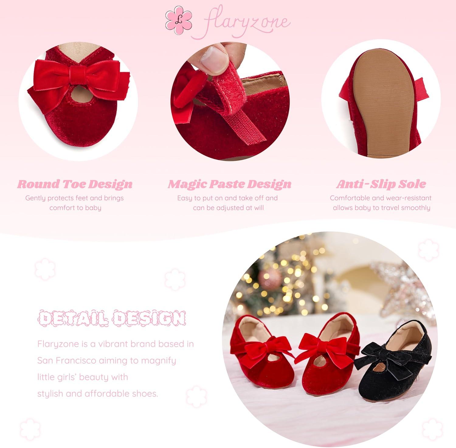Flaryzone Toddler/Little Girls’ Ballerina Flat Mary Jane Princess Dress Shoes – Wedding School Party(Red-fa13)