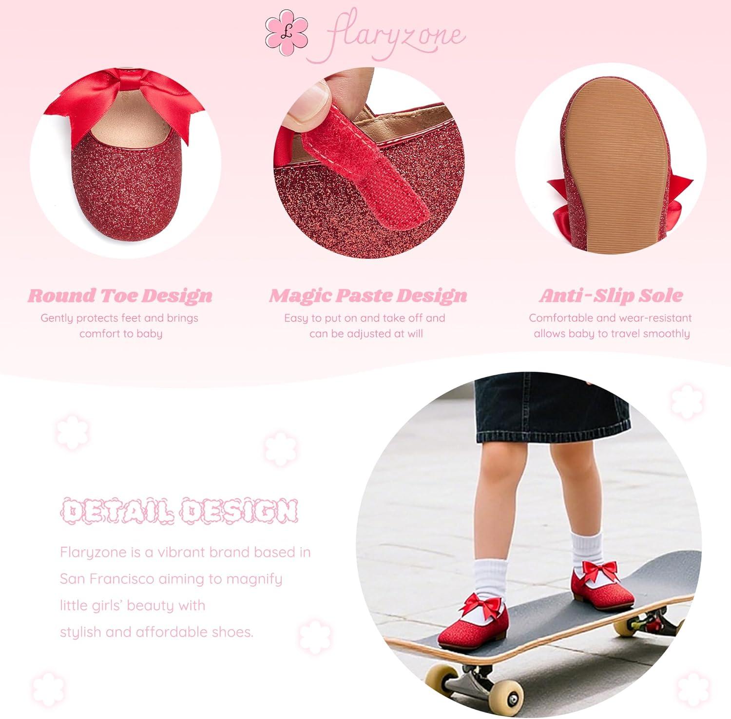 Flaryzone Toddler/Little Girls’ Ballerina Flat Mary Jane Princess Dress Shoes – Wedding School Party(Red-fm17)