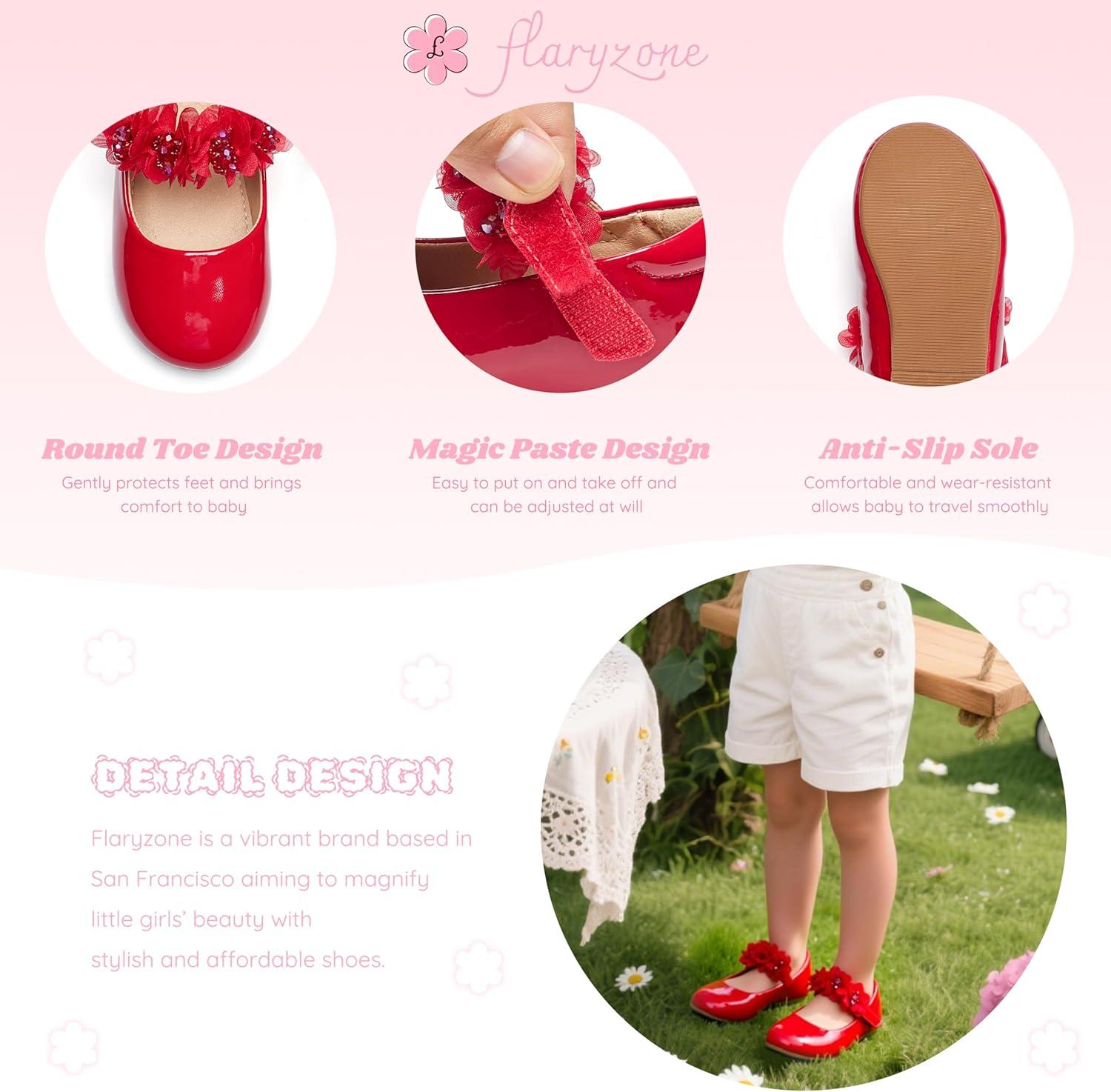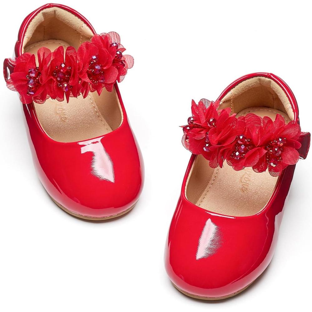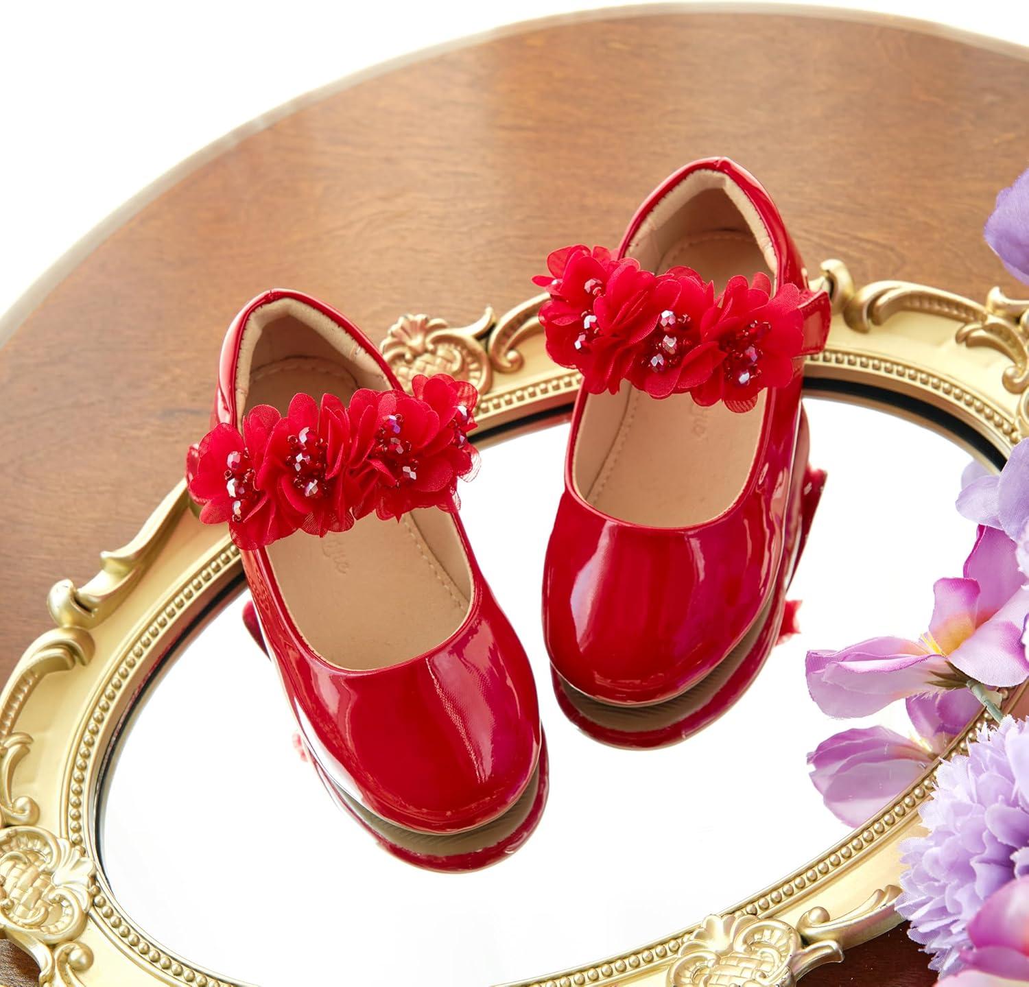 Flaryzone Toddler/Little Girls’ Ballerina Flat Mary Jane Princess Dress Shoes – Wedding School Party(Red-fm17)