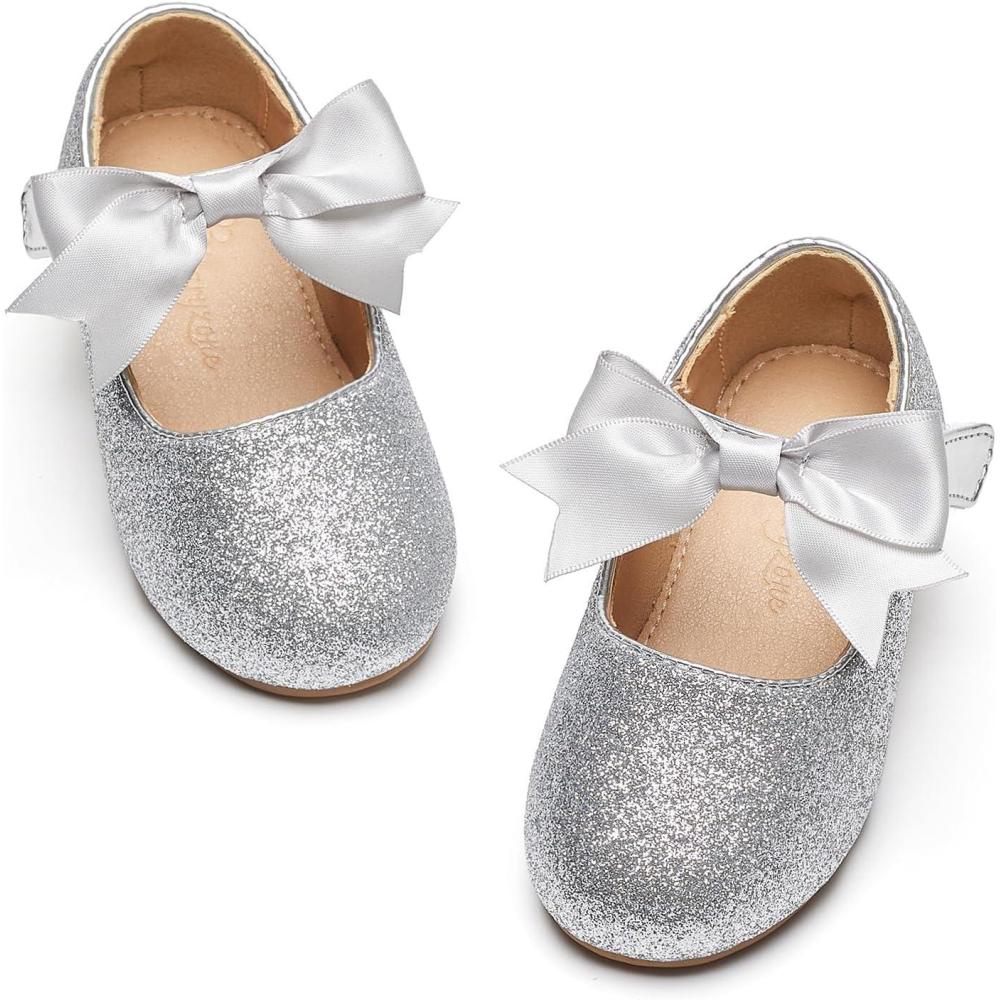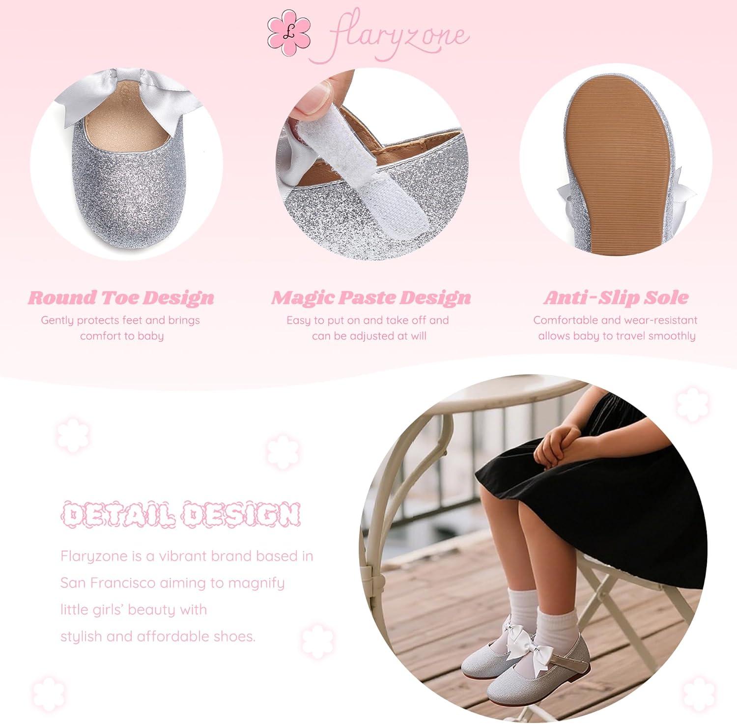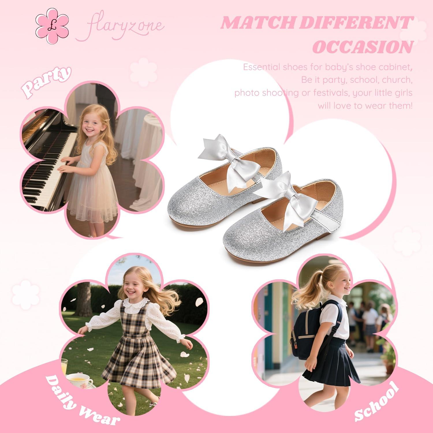 Flaryzone Toddler/Little Girls’ Ballerina Flat Mary Jane Princess Dress Shoes – Wedding School Party(Silver-fm12)