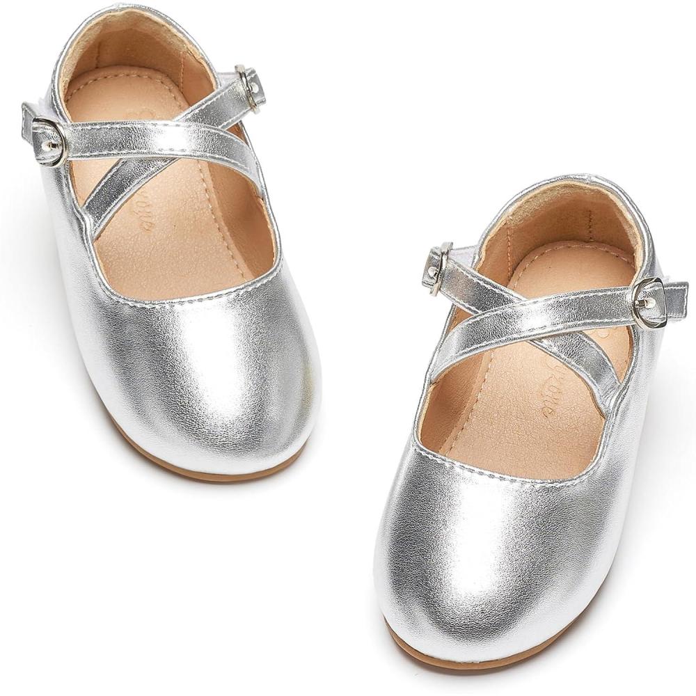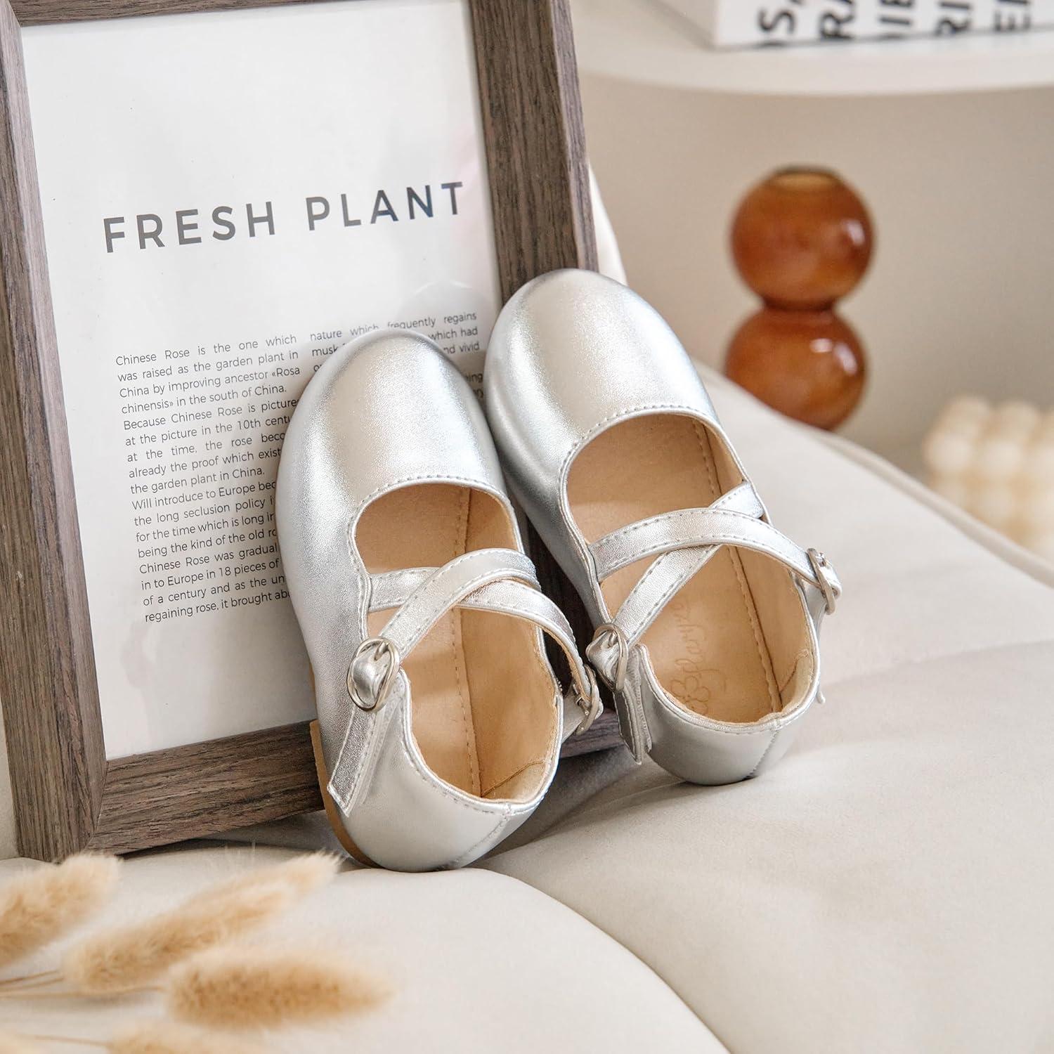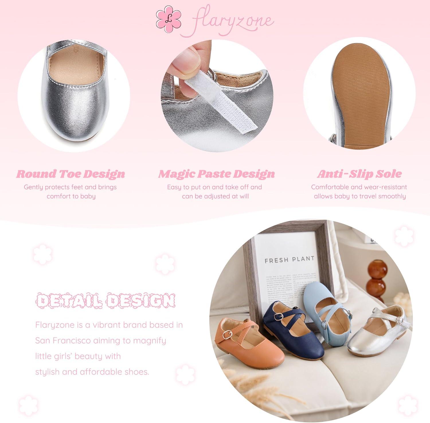 Flaryzone Toddler/Little Girls’ Ballerina Flat Mary Jane Princess Dress Shoes – Wedding School Party(Silver-fm16)