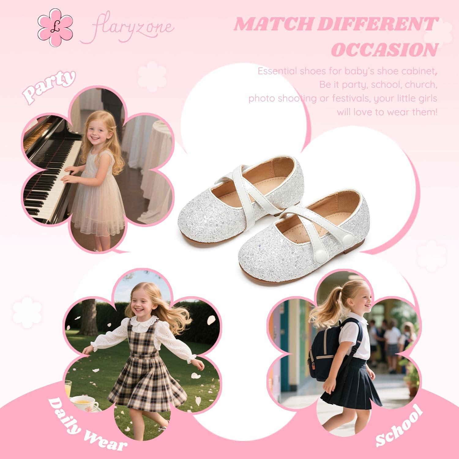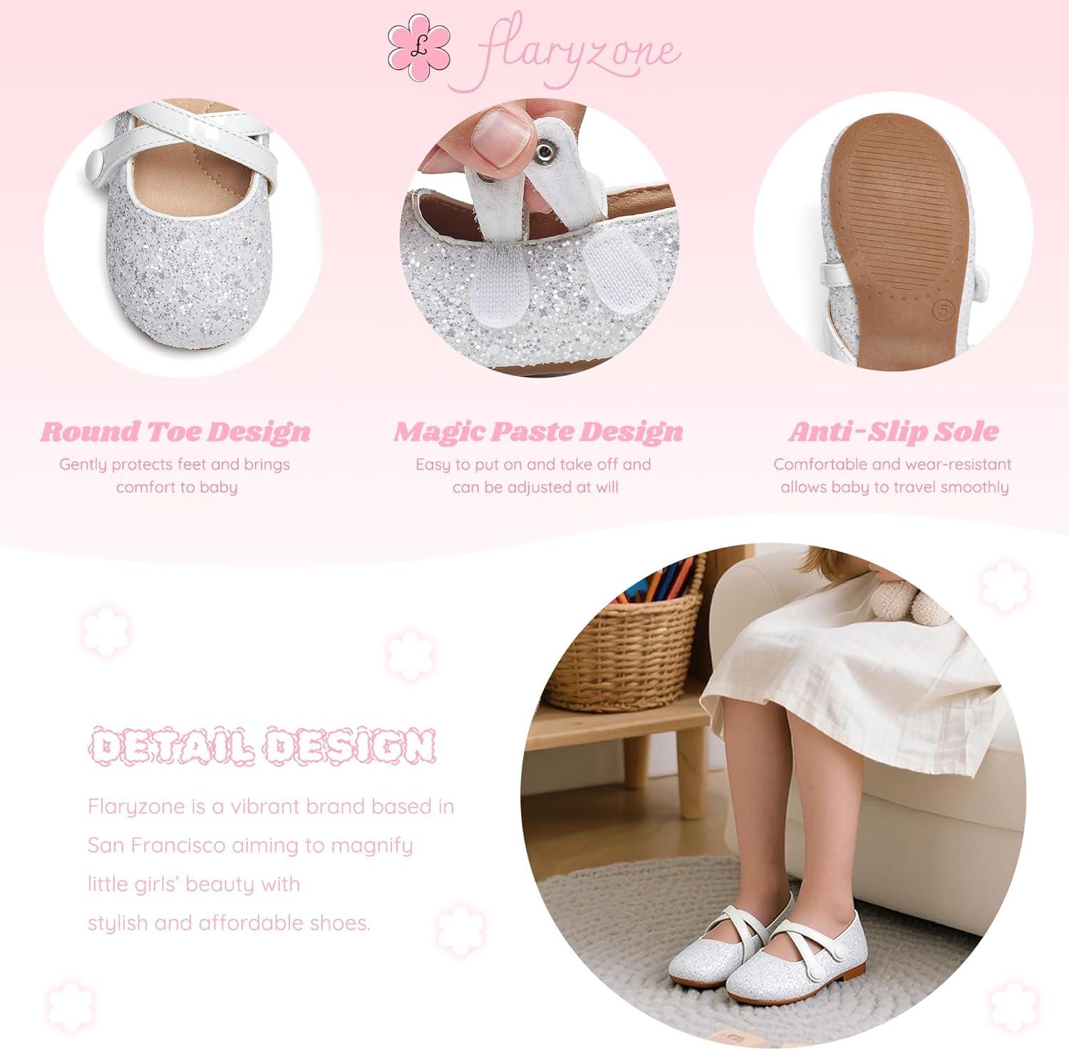Flaryzone Toddler/Little Girls’ Ballerina Flat Mary Jane Princess Dress Shoes – Wedding School Party(Silver-fb02)