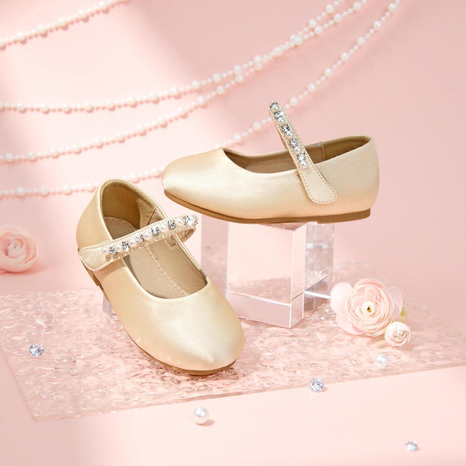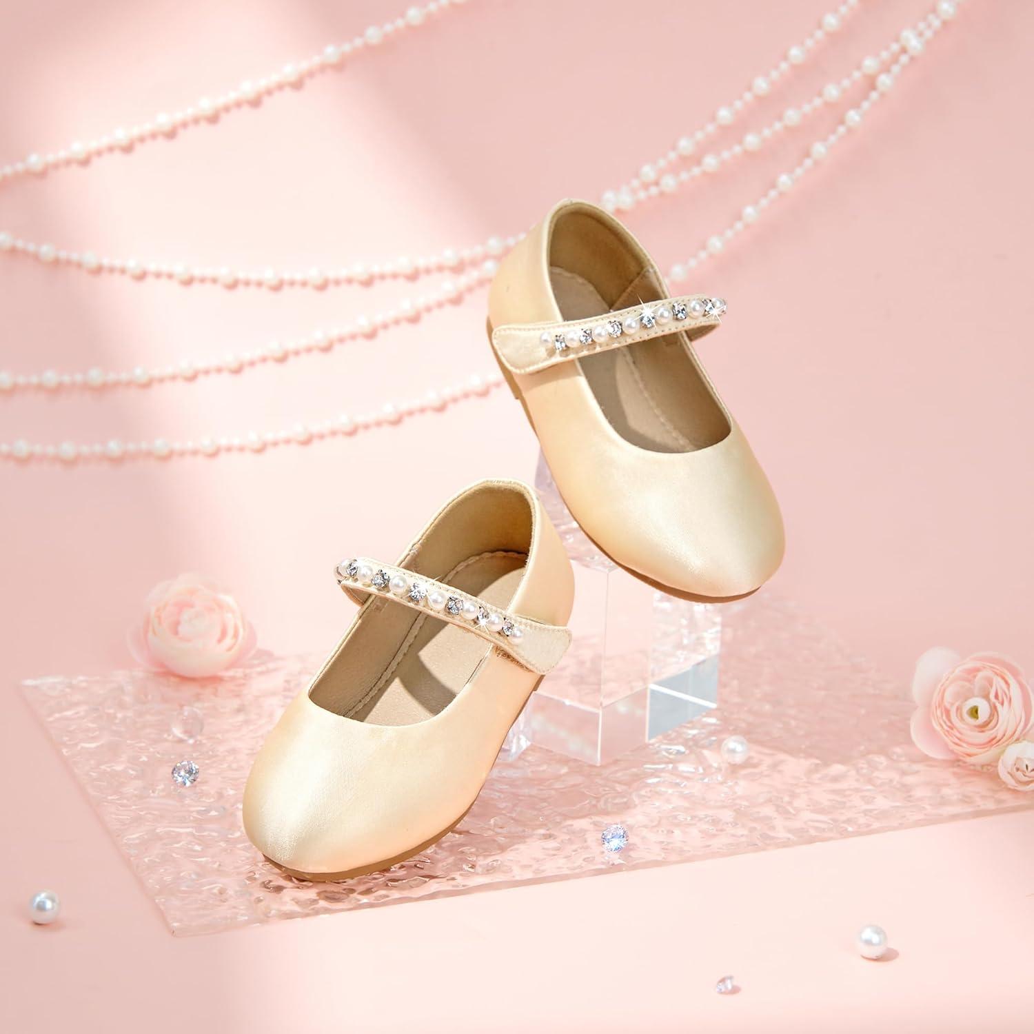 Flaryzone Toddler/Little Girls’ Ballerina Flat Mary Jane Princess Dress Shoes – Wedding School Party(Gold-fb02)