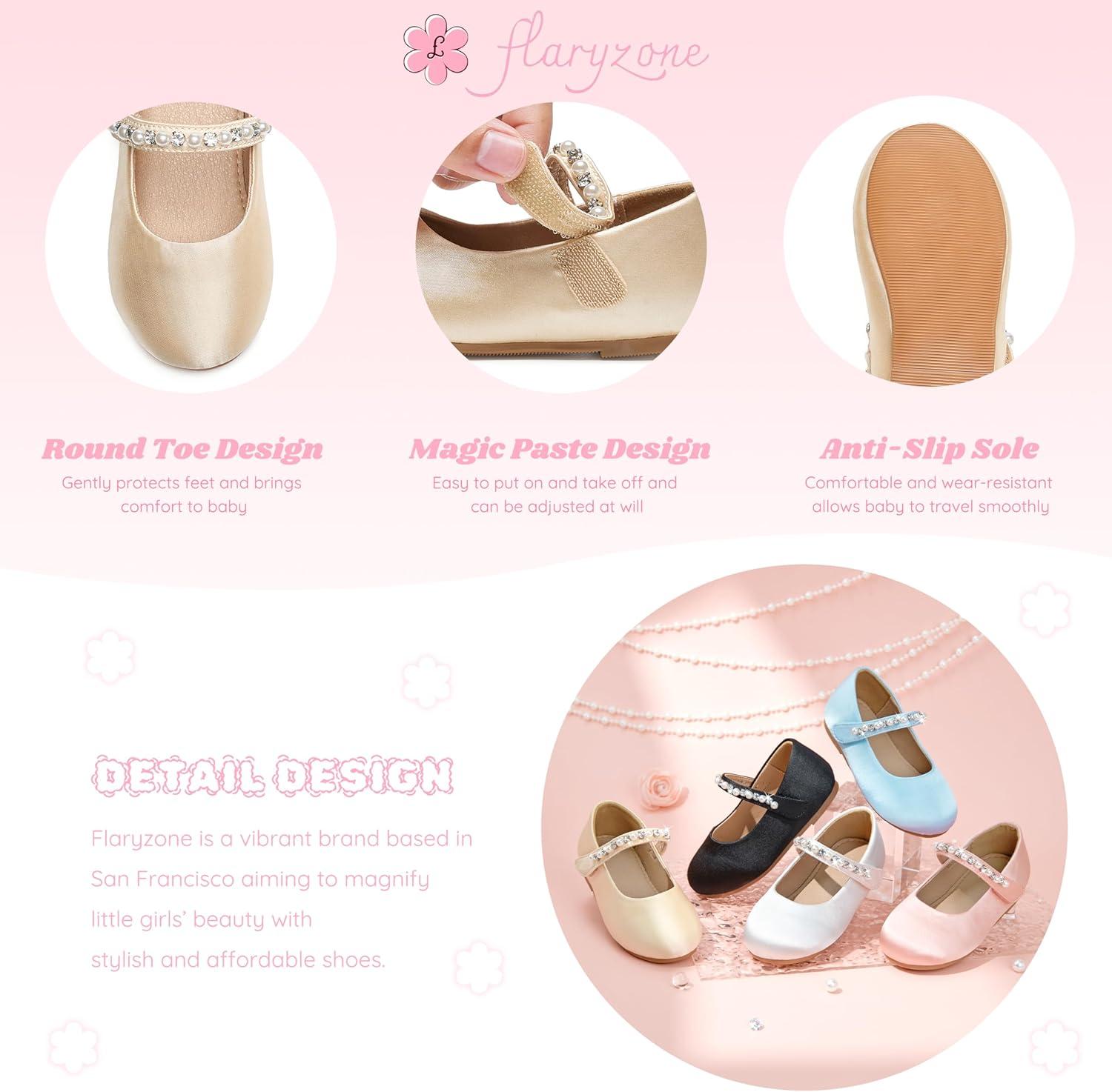 imageFlaryzone ToddlerLittle Girls Ballerina Flat Mary Jane Princess Dress Shoes  Wedding School PartyGoldfb02