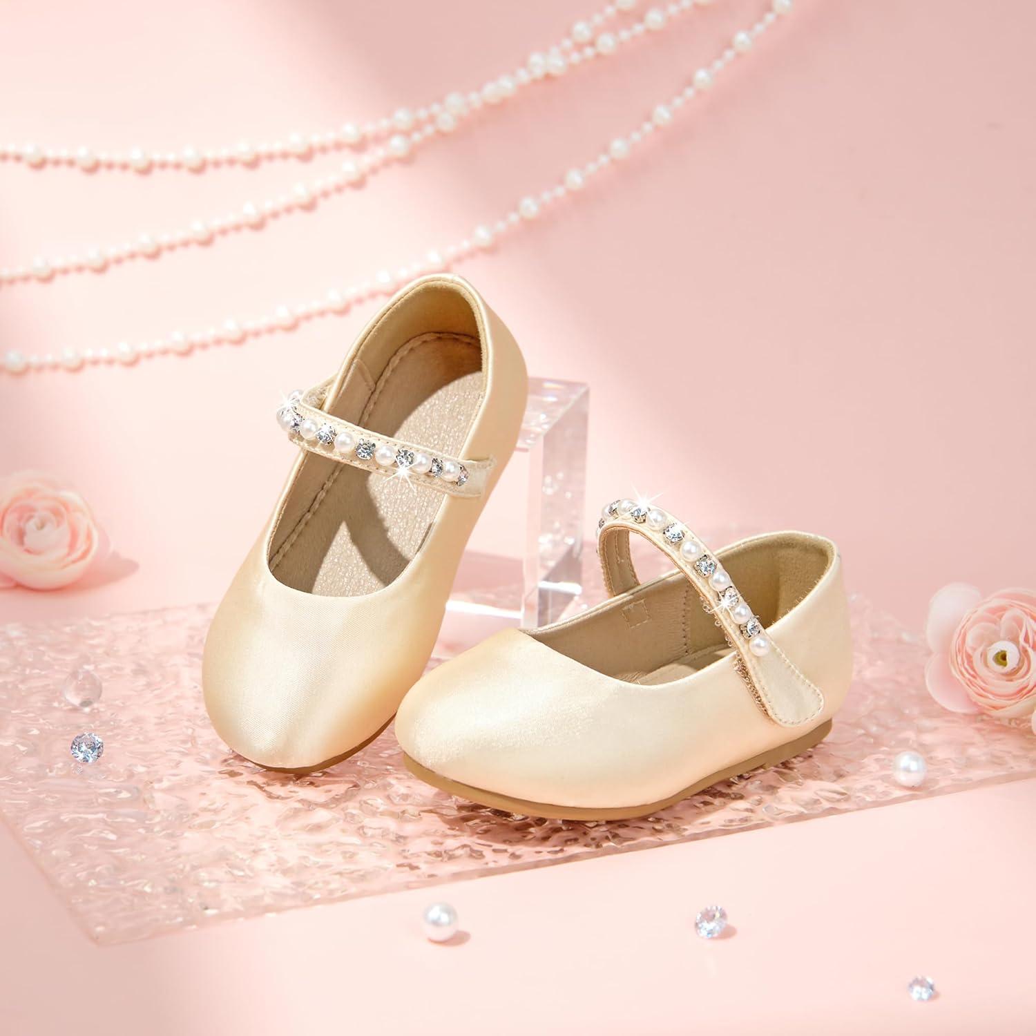 Flaryzone Toddler/Little Girls’ Ballerina Flat Mary Jane Princess Dress Shoes – Wedding School Party(White-fa16)